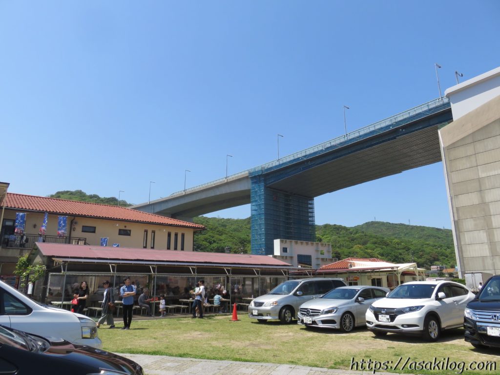ひとまず淡路島の最北端・明石海峡大橋の真下にある「道の駅あわじ」で休憩。ここの駐車場からも明石海峡大橋が見えますよ~。