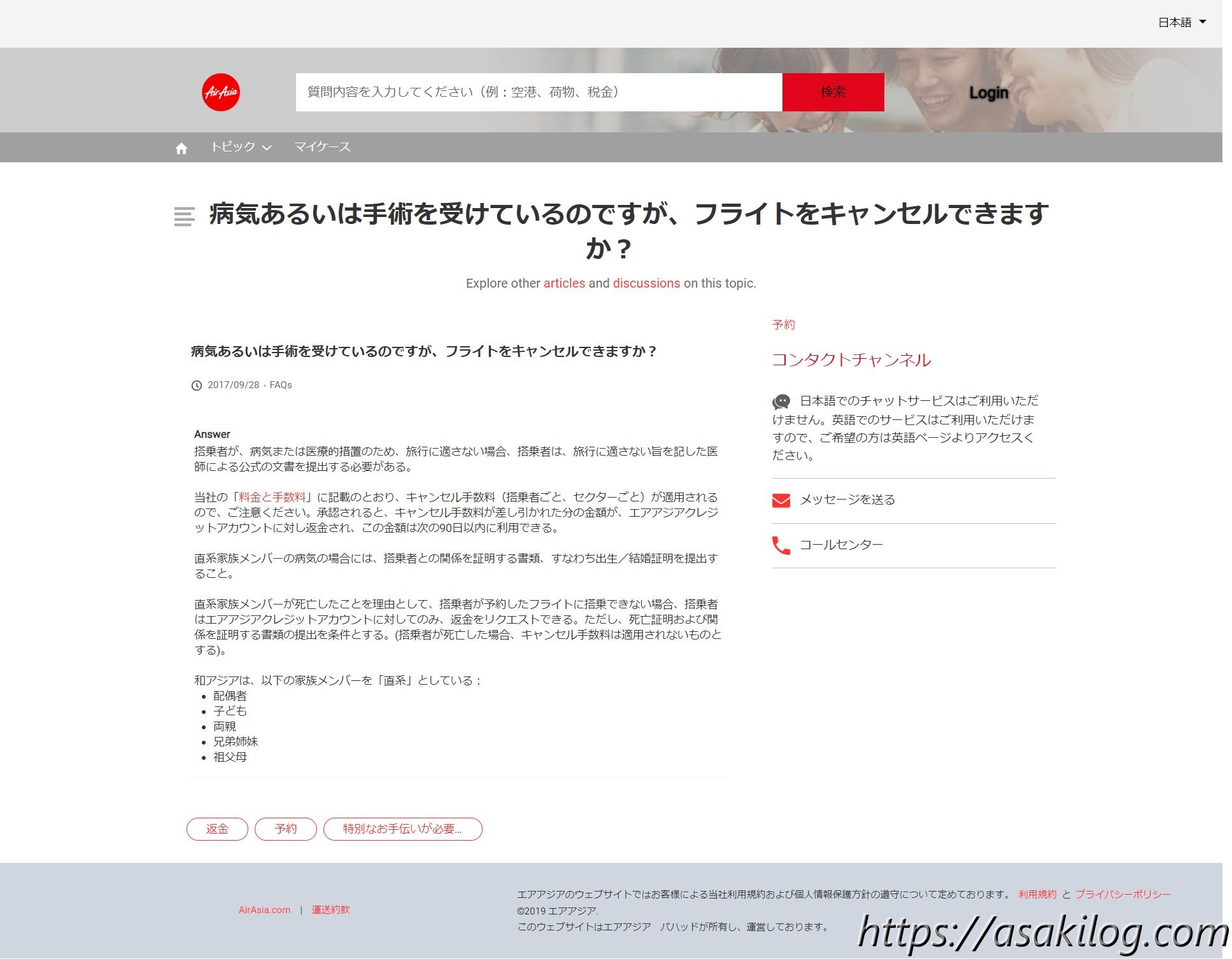引用元:病気あるいは手術を受けているのですが、フライトをキャンセルできますか?(エアアジア公式)