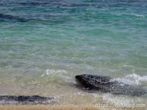 海岸線をドライブしていたら、真っ青な海が見えてきました。試しに車から降りて、近寄ってみると・・・。