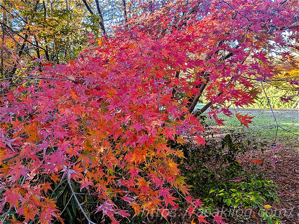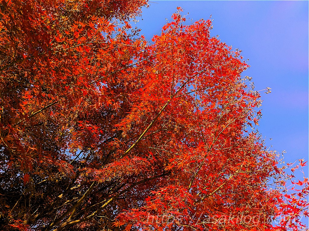 有馬富士公園では、特にモミジの紅葉がとっても綺麗で。澄んだ青空を背景に、真っ赤な葉が色鮮やかでした。