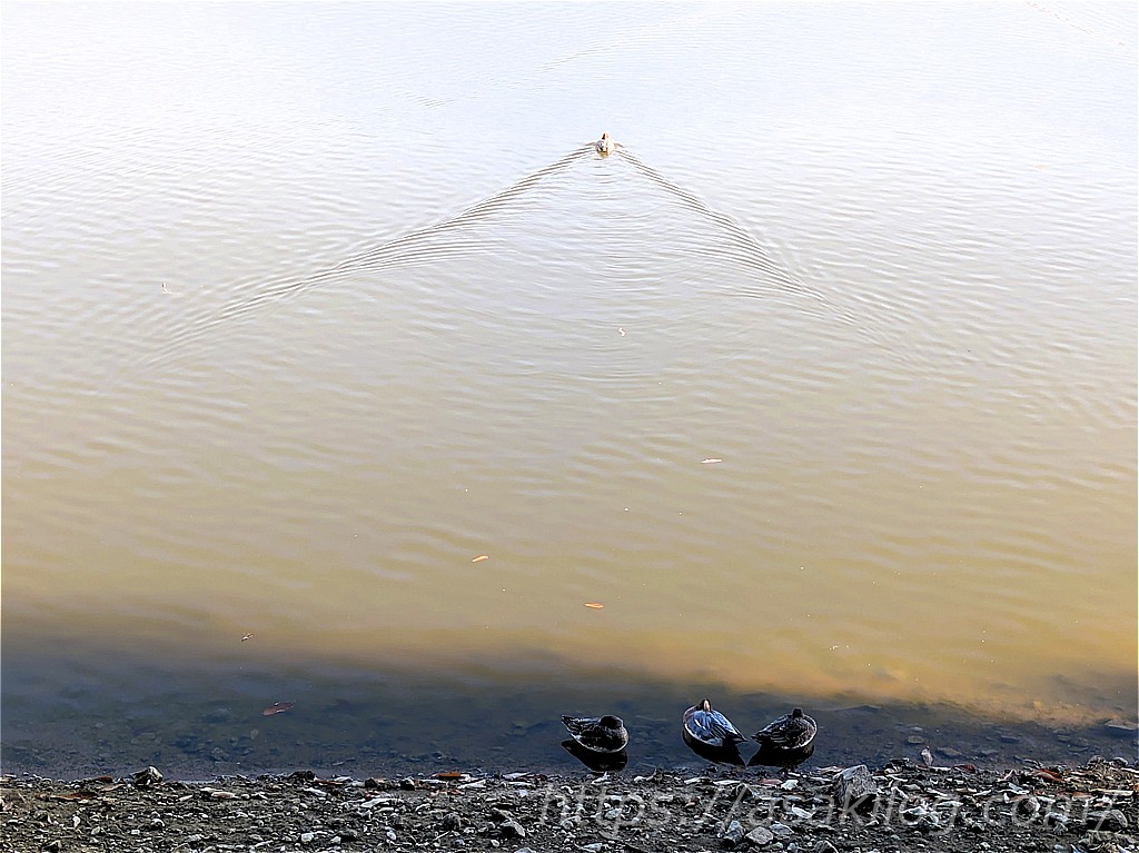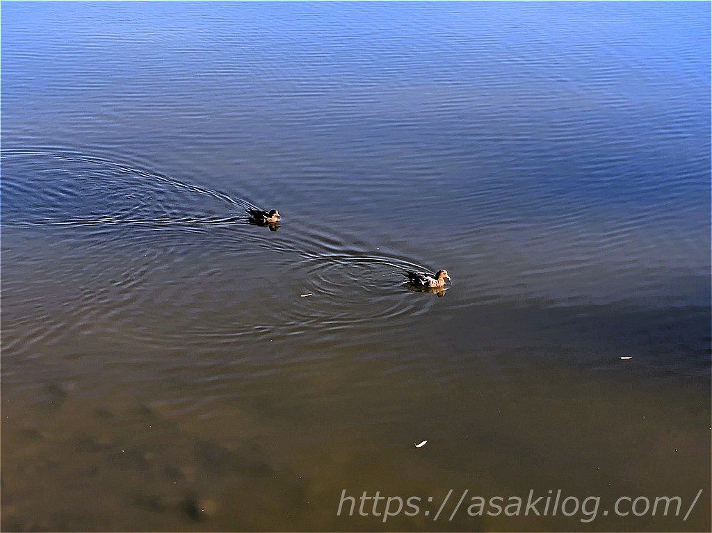 散策途中で、ゆったり泳いだり、のんびり寛ぐ鴨を発見。こういった光景をぼんやり眺める時間には、心癒されますね。