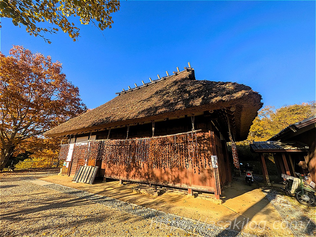 公式HPによると、かやぶき民家では「かまどのある土間や、囲炉裏(いろり)のある板の間など、今では見ることが少なくなった“かやぶき屋根の民家”を再現」しているそう。営業時間が10時~15時のため、残念ながら私が訪れたタイミングでは中を見れませんでした。