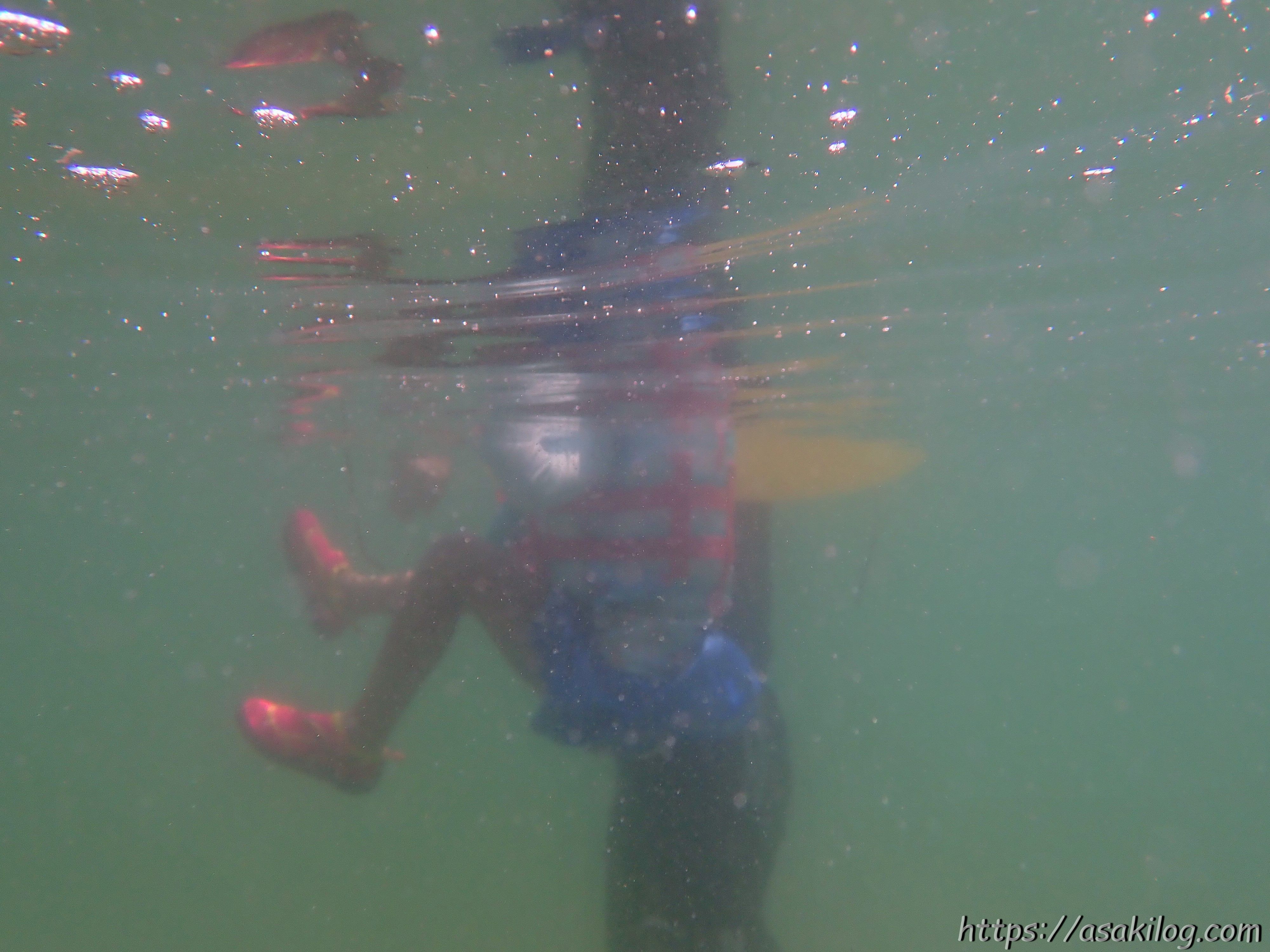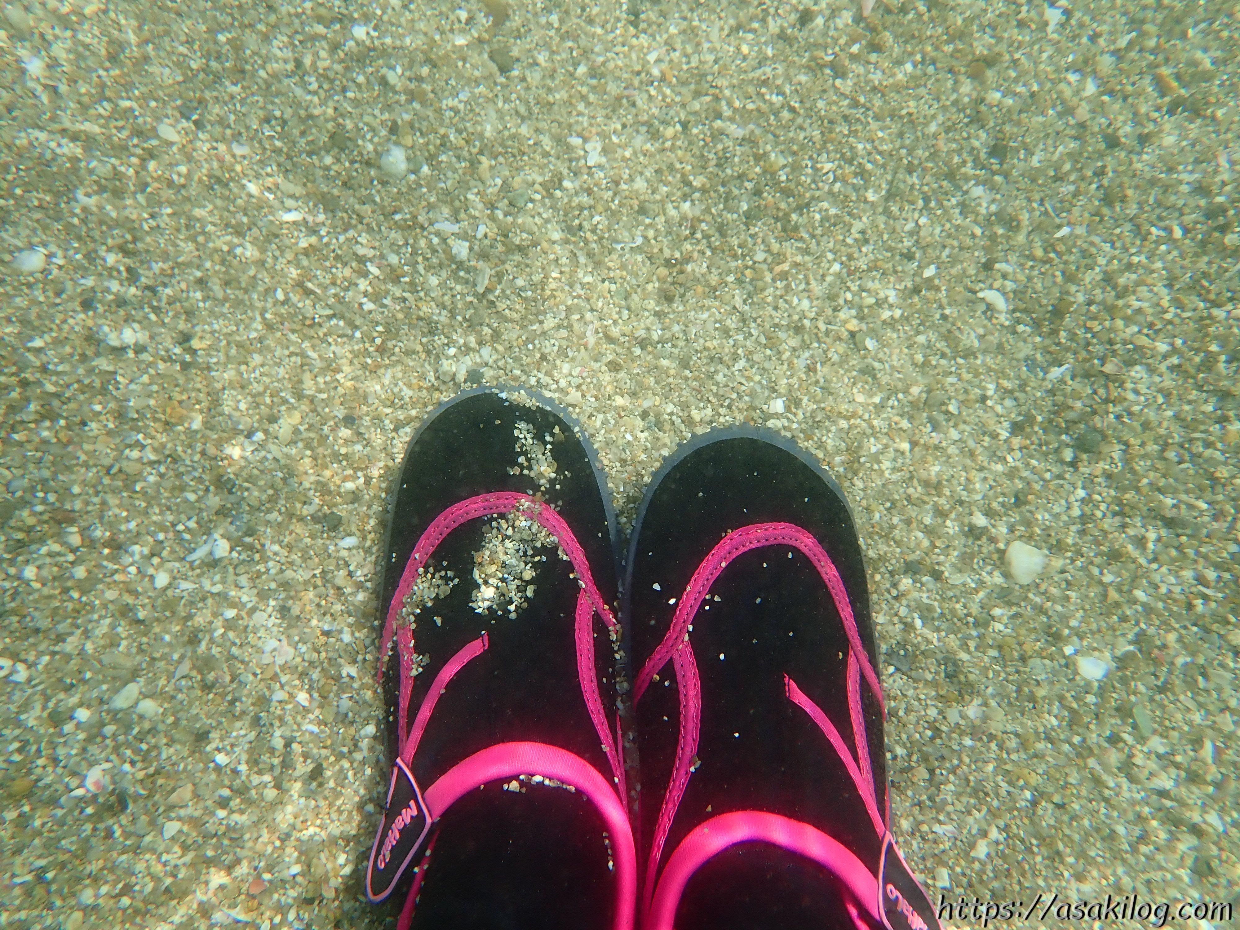 マリンブーツを履いてシュノーケリングしている時に、水中で自分の足を撮ってみました。