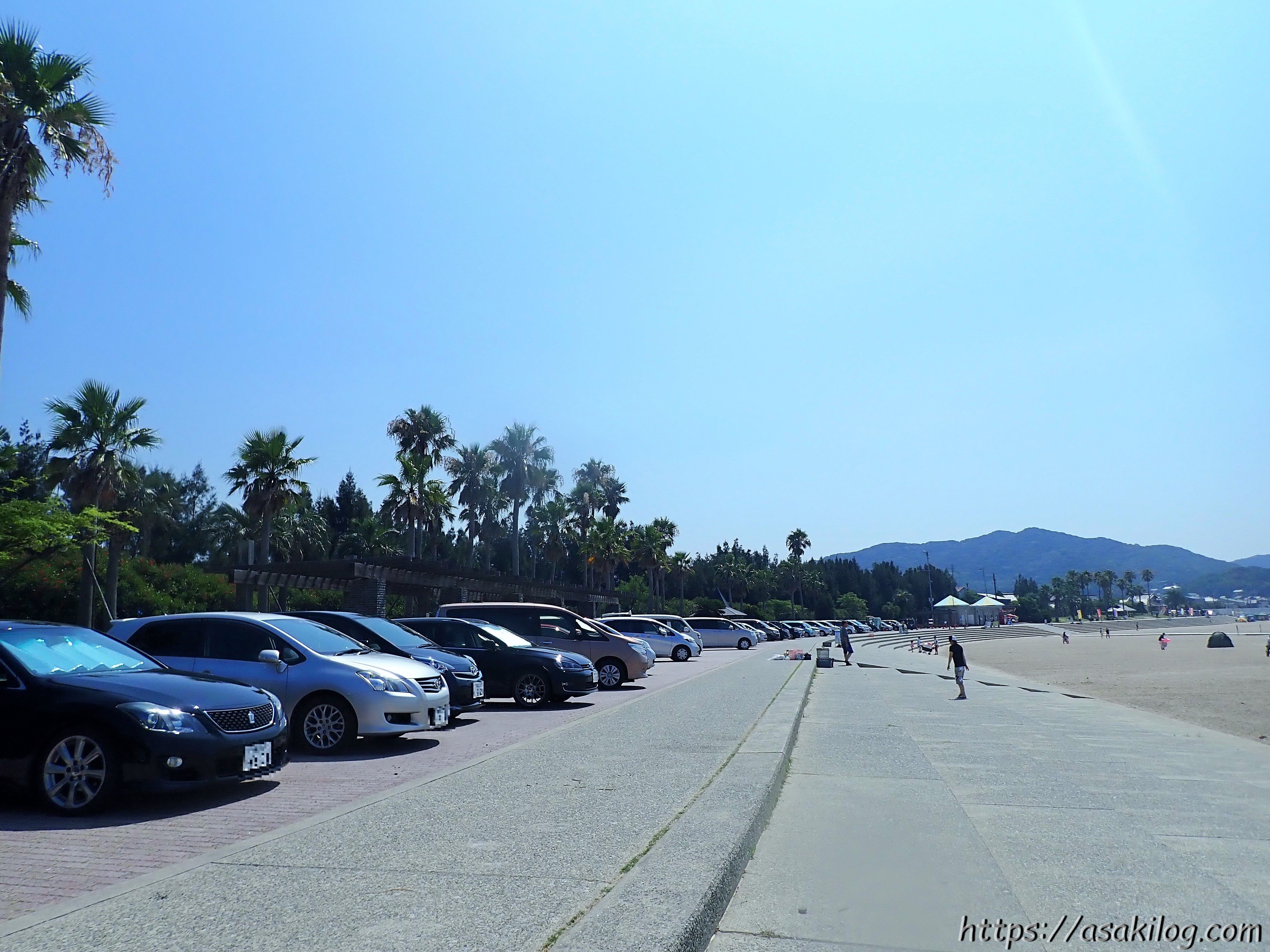 阿万海水浴場に入ってすぐの場所に、駐車場だけのエリアもあるのですが、今回私たちが訪れた時には既に満車・・・。奥にあるこちらの駐車スペースに誘導されました。