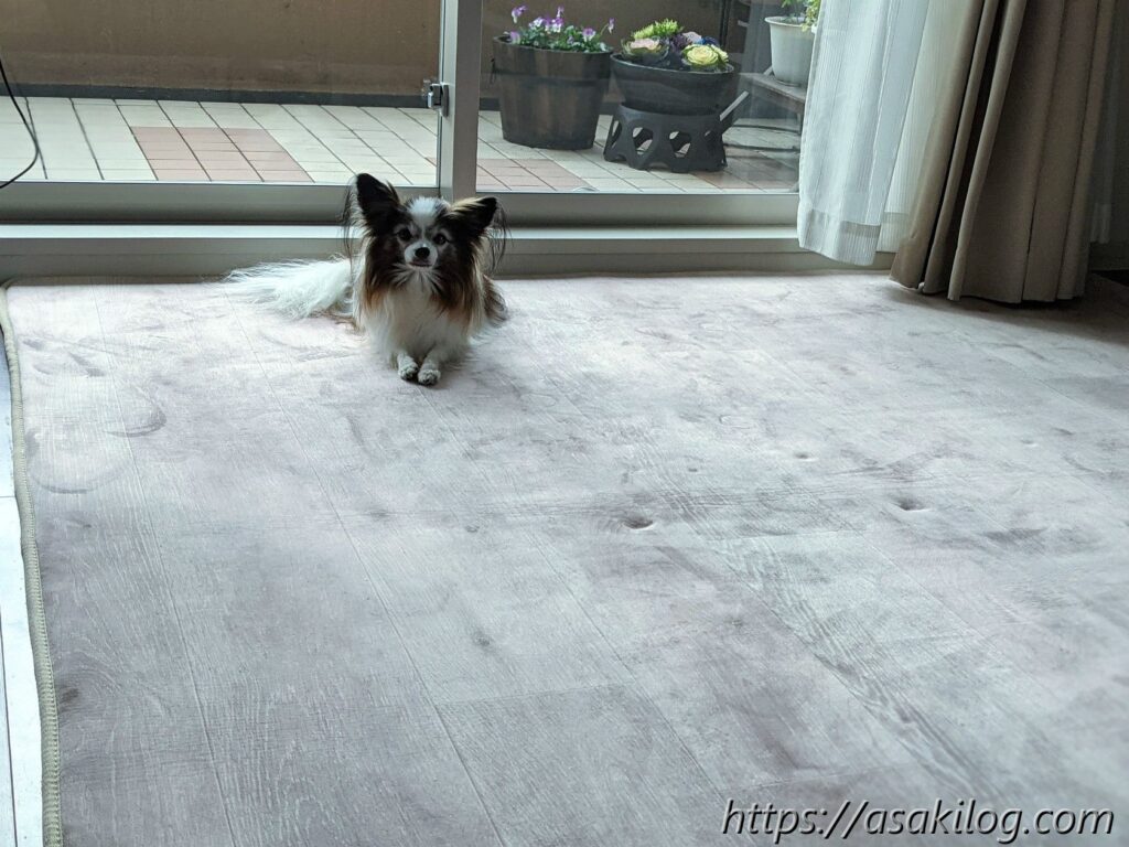 愛犬ニコさんが14歳になり、まだまだ元気ですが、時々粗相が増えてきました(寝ぼけてトイレ間に合わなかったり、フードを吐いてしまったり)。リビングのラグをその都度洗っていたのですが、かなり洗濯が大変&なかなか乾かない・・ちょっとした粗相なら簡単にお掃除できるラグは無いか?と探して見つけたものが「グラムスタイル 低反発ラグマット(スーパームート オーク)」です。