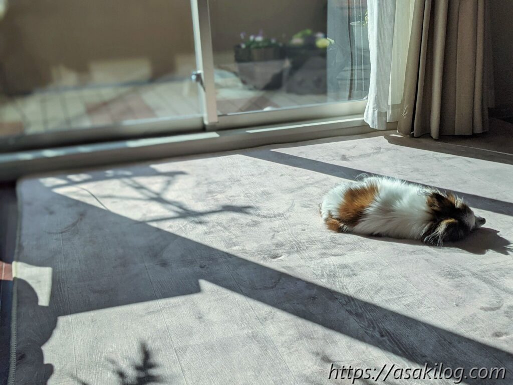 来年はもう少しオシャレな買い物をしたいものですねぇ。写真は低反発ラグマットで昼寝する愛犬ニコさん。とっても気持ちよさそう、これは買ってよかった!