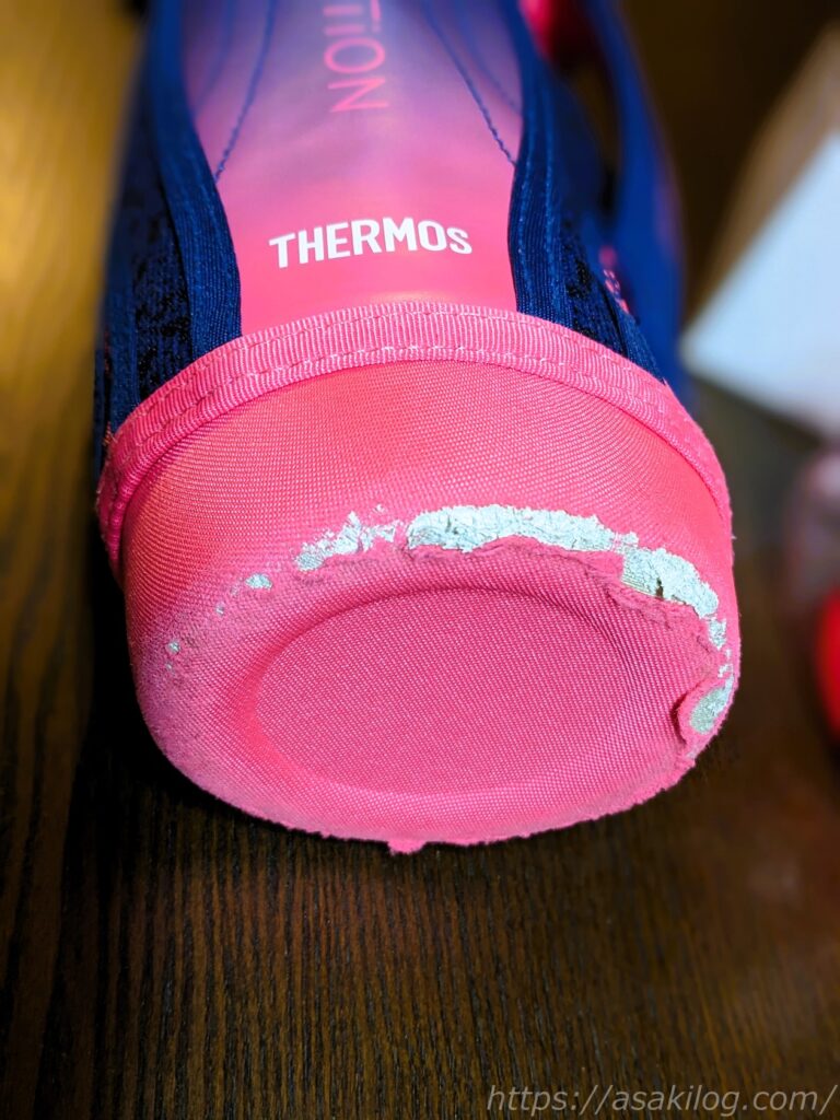 娘が使っているサーモスの水筒カバー。使い方が荒っぽいため、カバーの底だけが破れて、数カ月おきにカバーだけ買い替えていました(2,000円)。