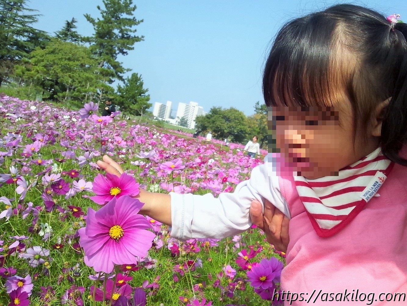 2013年は、娘の初コスモス。1歳10か月の頃で、よちよち歩きながら、コスモスを珍しそうに観ていました。