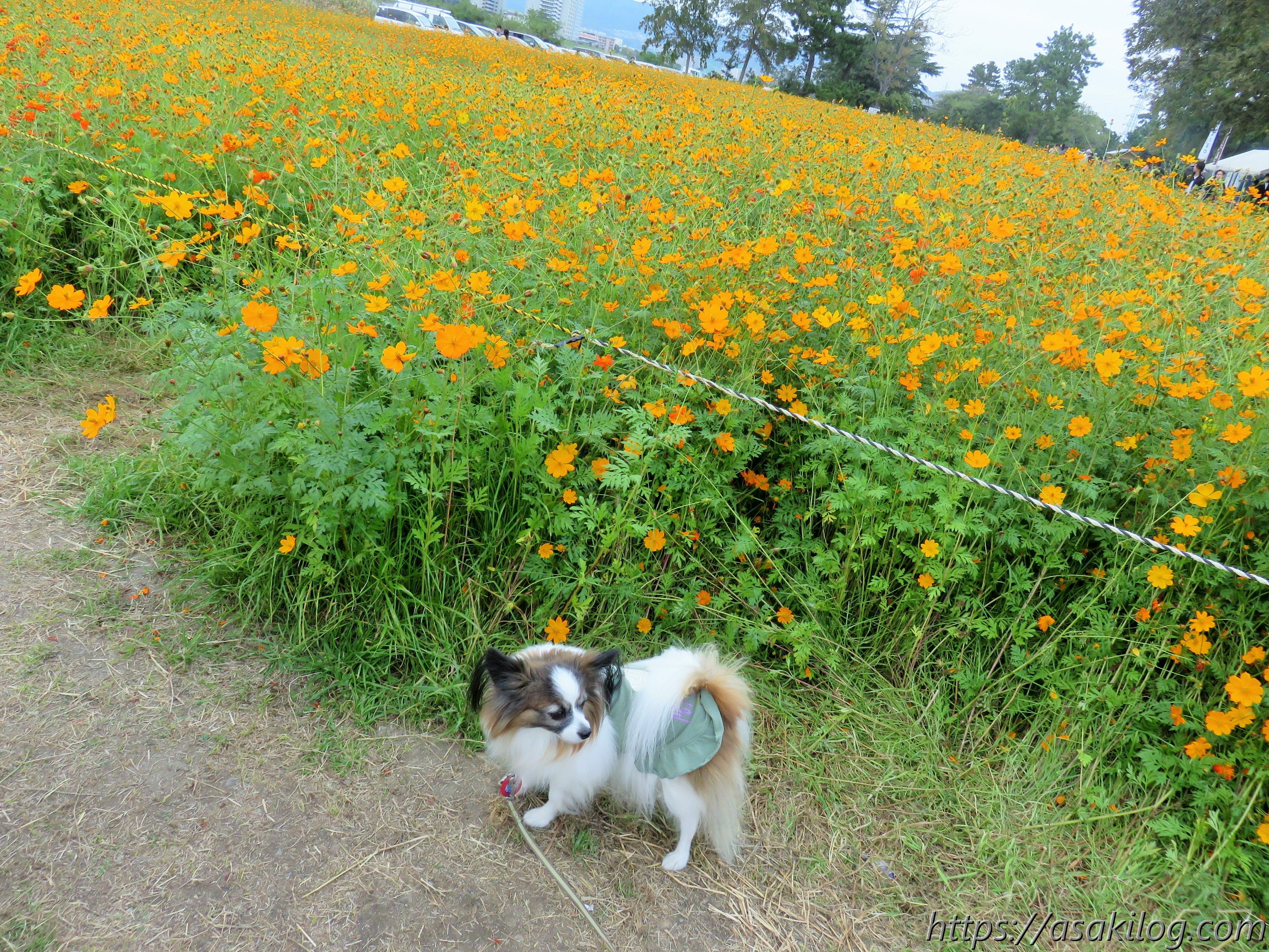 これまで何度も訪れている武庫川髭の渡しコスモス園ですが、我が家の飼い犬ニコさんも必ず一緒に連れていきます。