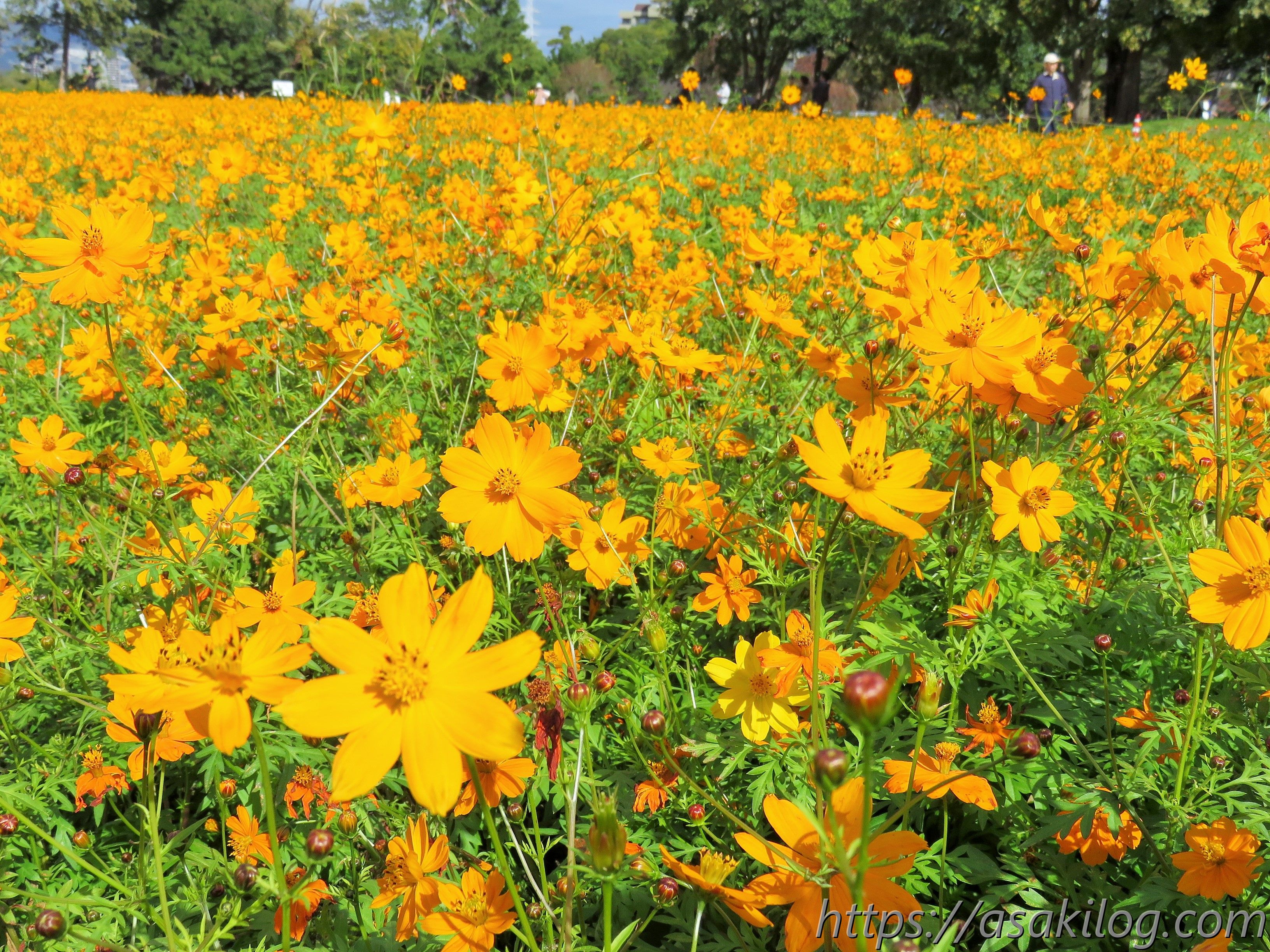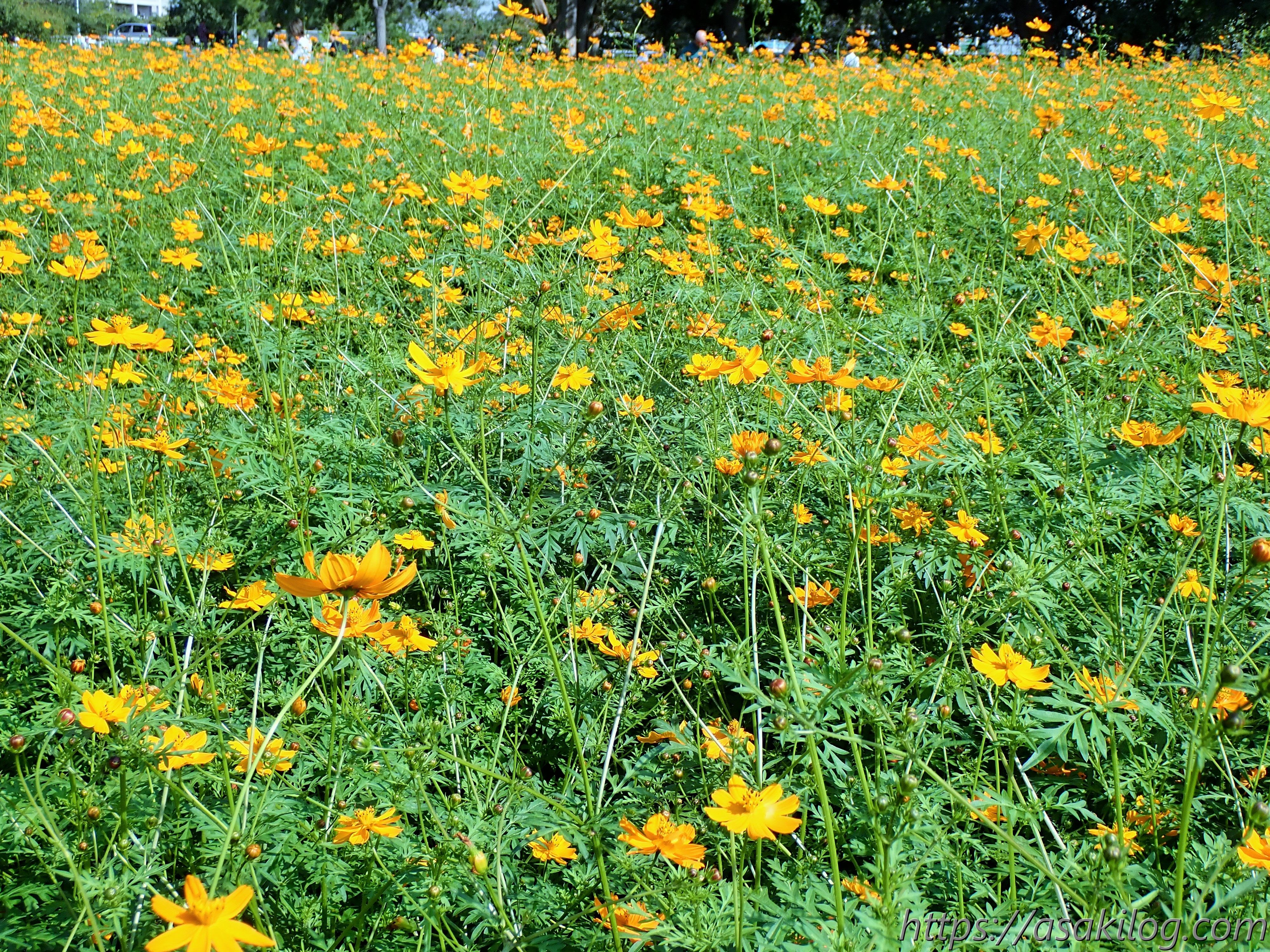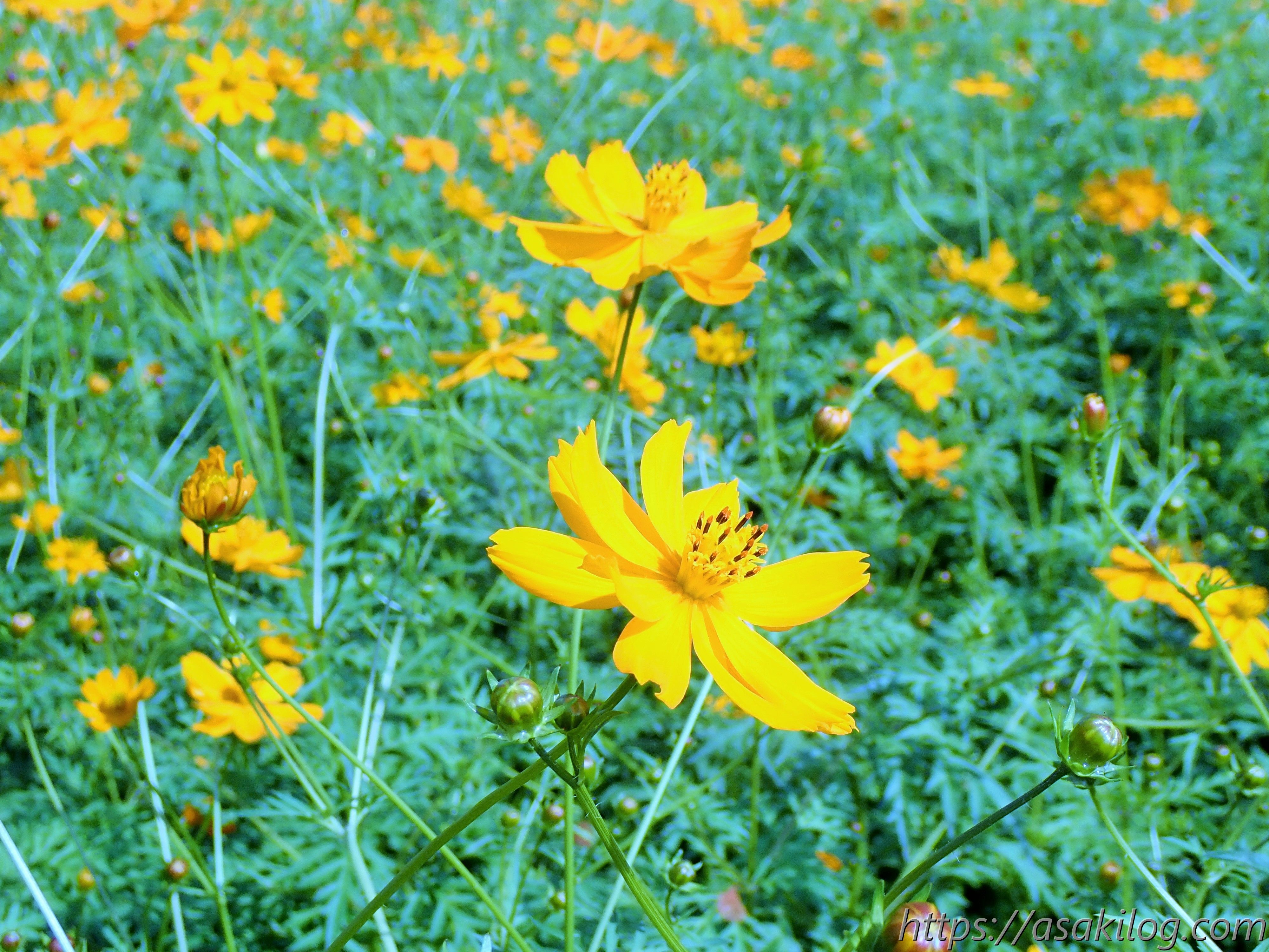 こちらはその名のとおり、黄色いコスモスの花。真っ黄色のジュータンが広がっています。