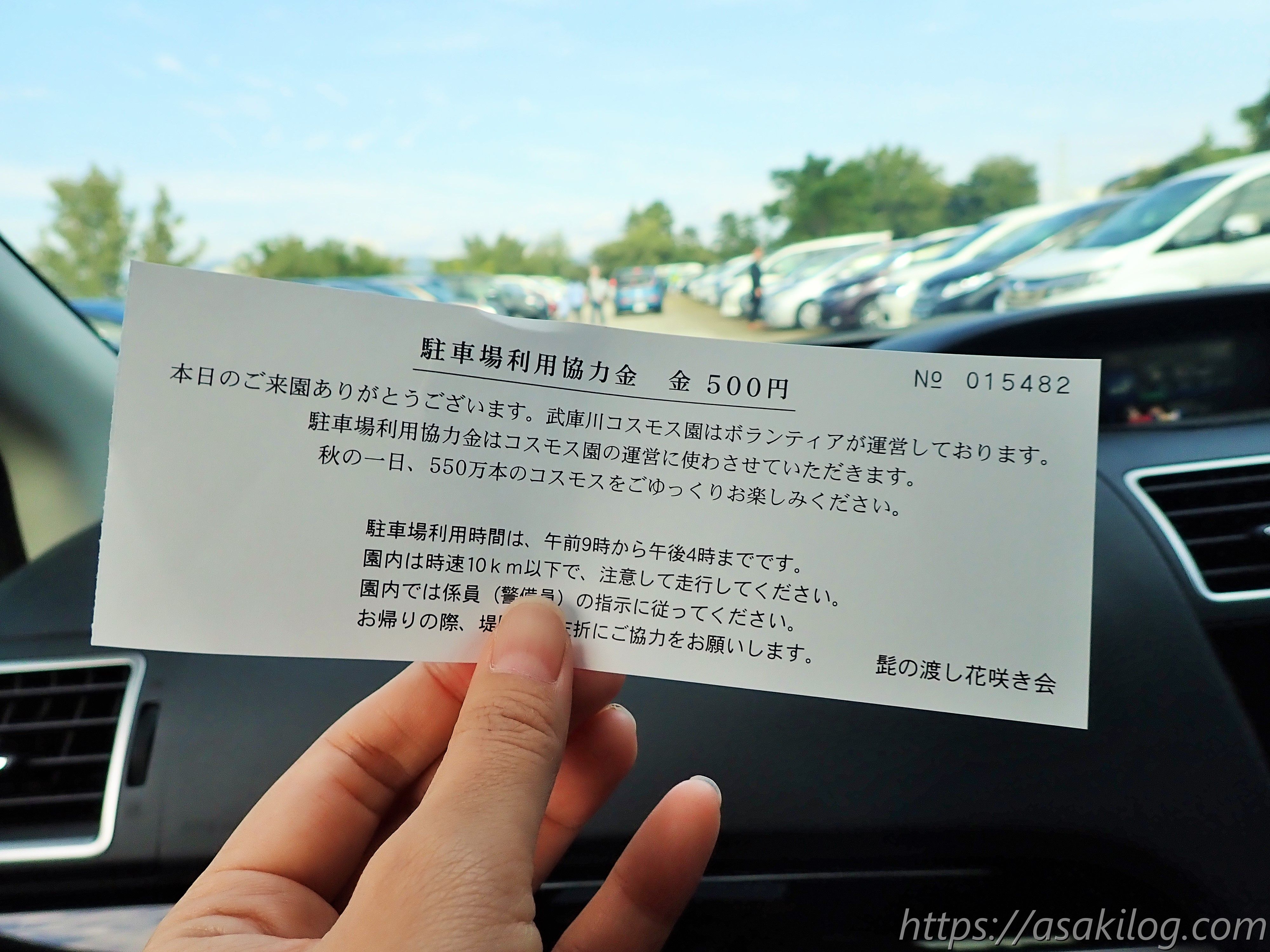 駐車場利用協力金を支払ったら、駐車場へ誘導してもらえます。なお駐車場利用協力金は、コスモス園の運営に使われていますよ。