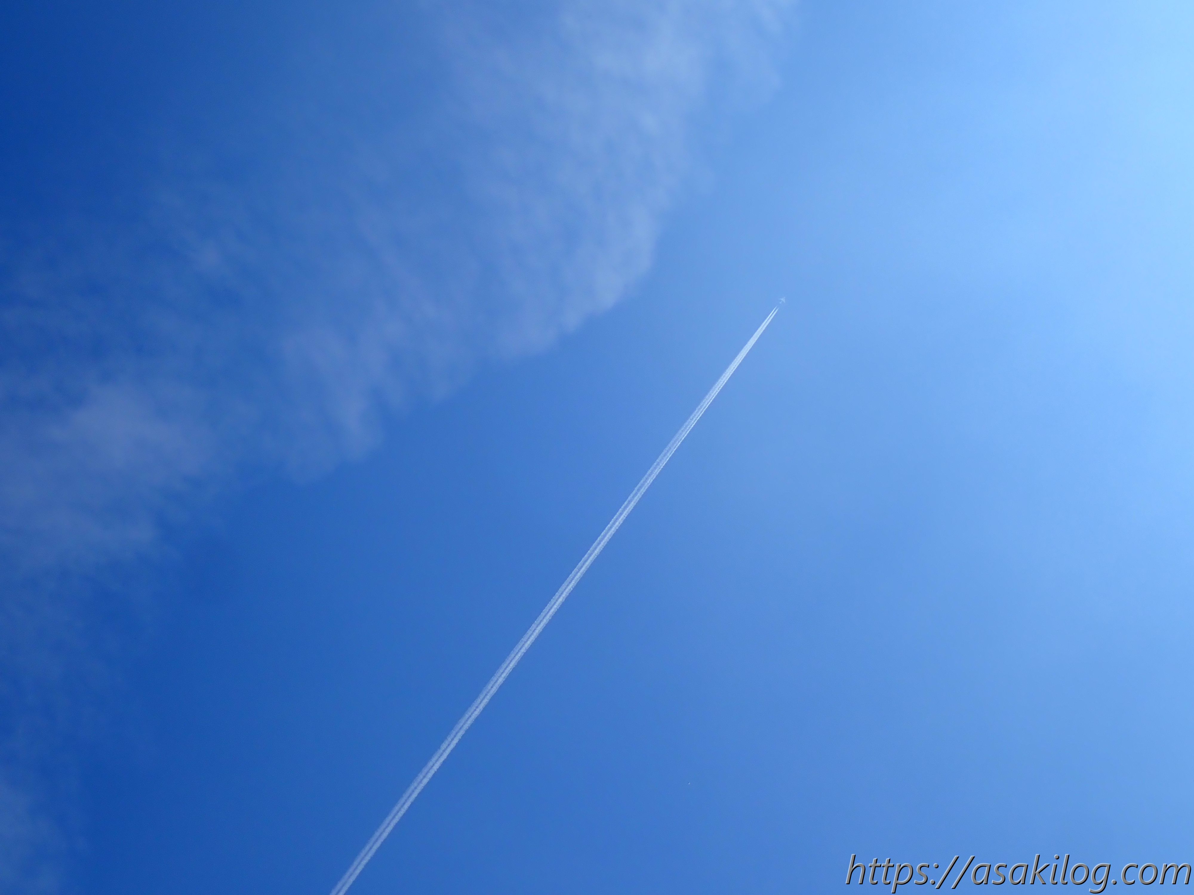 コスモス畑を眺めながらボーッとしてたら、空に綺麗な飛行機雲も見つけました。なんだかちょっと得した気分。