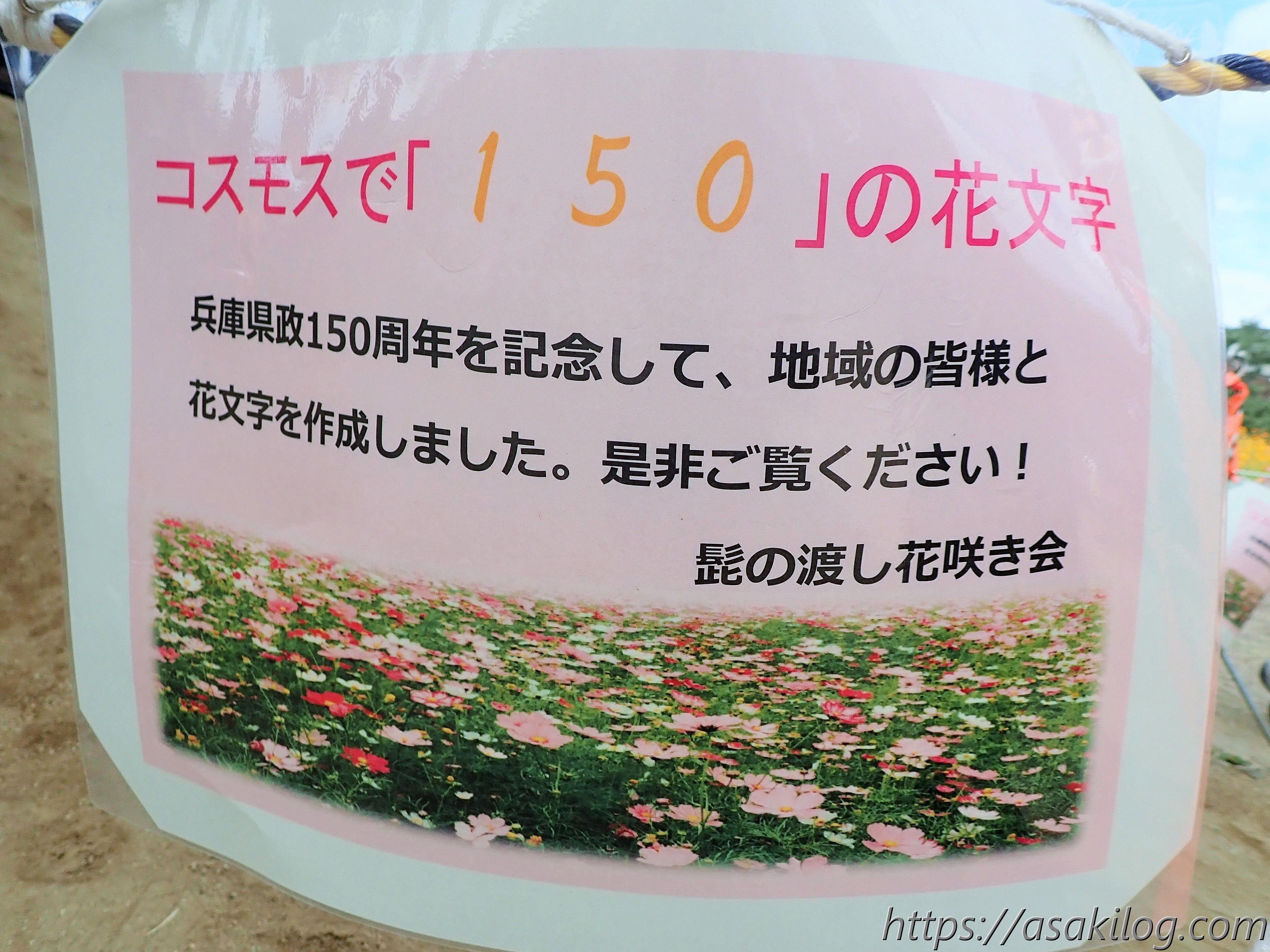 地域住民が中心となったボランディアグループ「髭の渡し花咲き会」のメンバーをはじめとする多くの人々の手により、毎年見事なコスモス園を開園。全7区画のコスモス畑で、阪神間の秋の花の名所として知られている場所です。