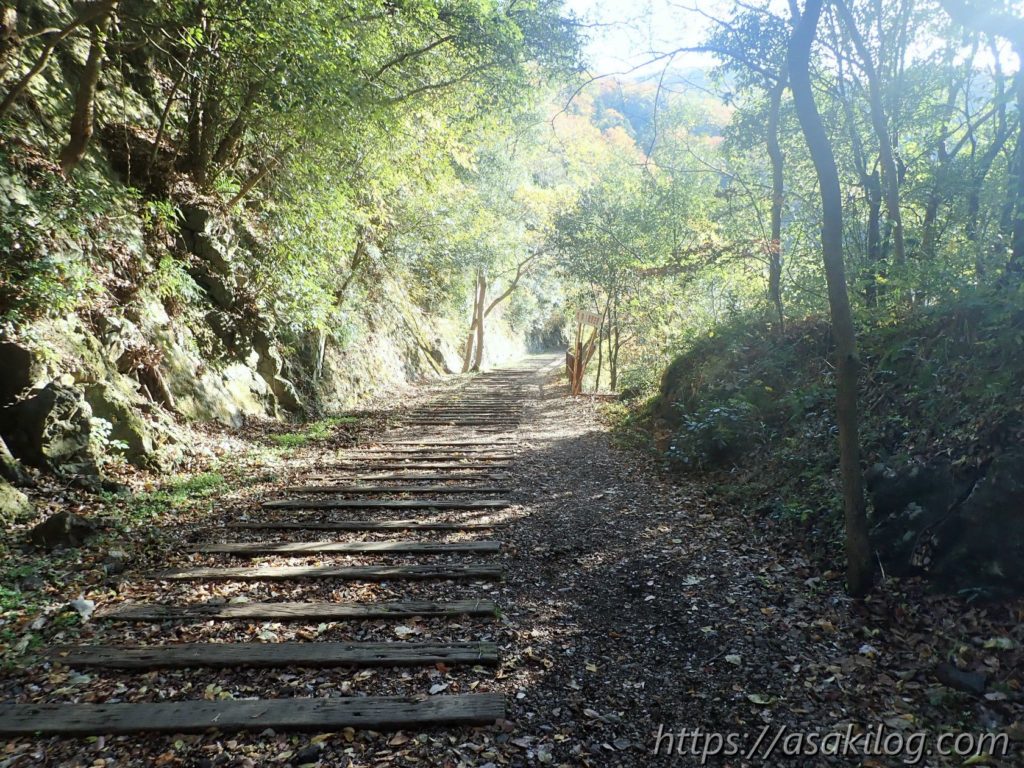 ハイキングコースでは、枕木が残る廃線敷がずっと繋がっています。