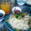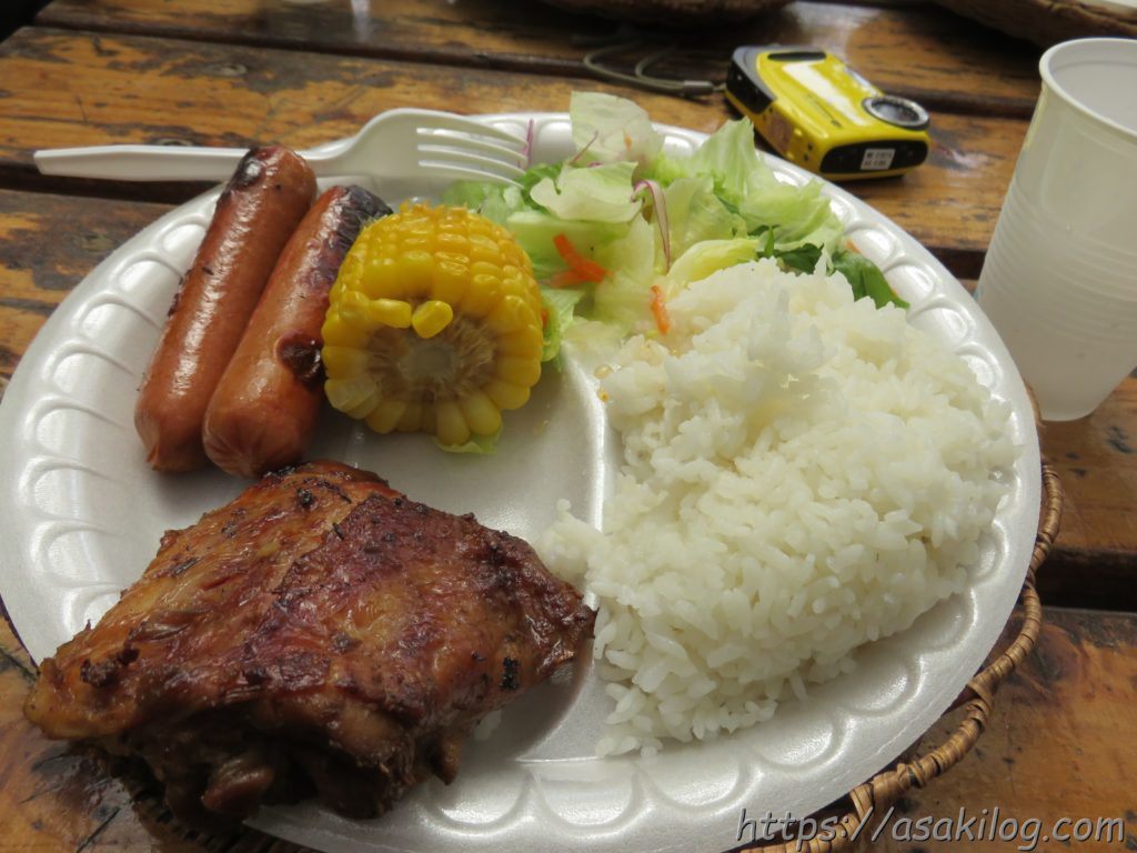「BBQランチ」とあったので、BBQしながら食べるのか?と思いきや、既にBBQで調理済みのものを食べるスタイルでした。内容はこんな感じ。