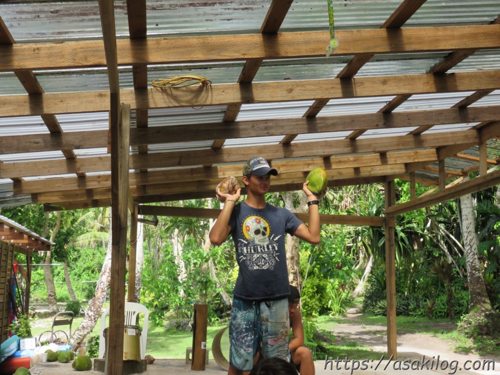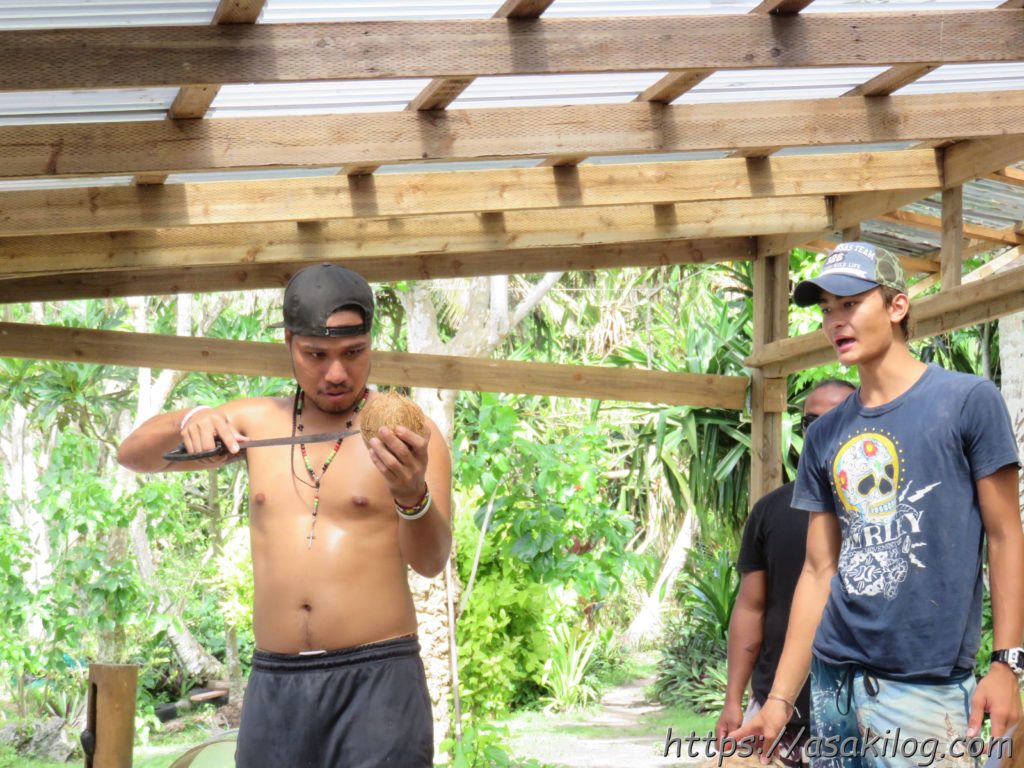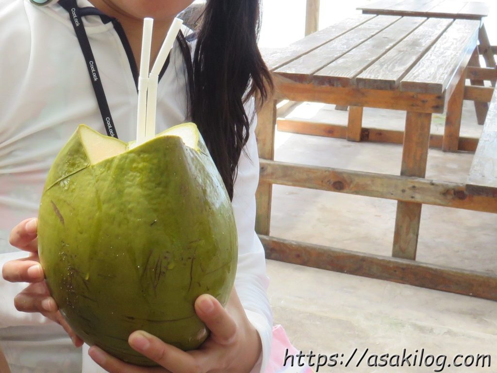 私個人的には、ヤシの実の果肉を食べるのが大好きなんですが、それは叶いませんでした。(ナタデココのようなゼリー状でとっても美味しいんですよ~!!!)