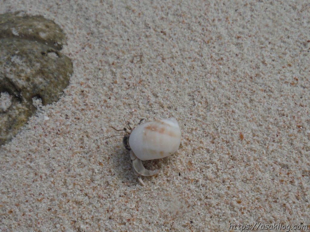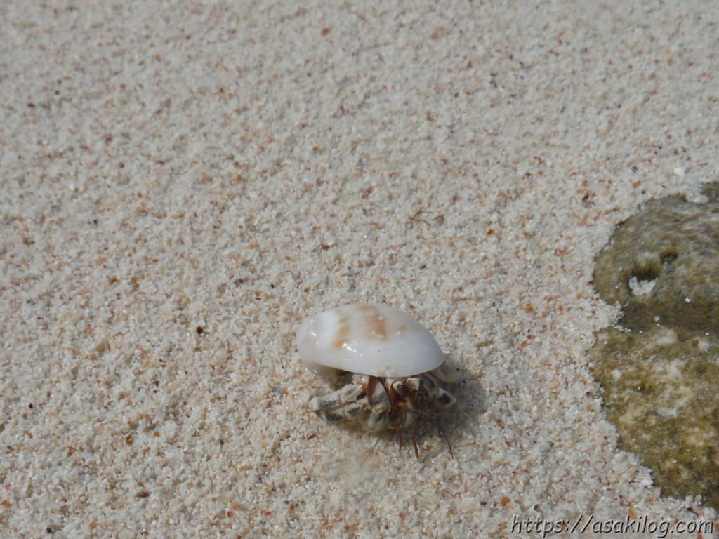「♪ やーどかりかり こだわりやさん ♪ やーどかりかり こだわりやさん ♪」と歌わずにはいられませんでした(笑) ヤドカリの行く先をひたすらついていく私と娘。その結果、こんがりと日焼けしたことは言うまでもありません。