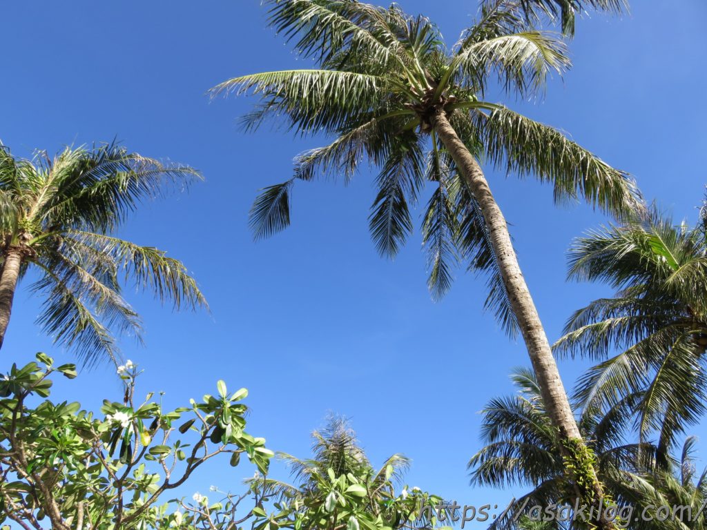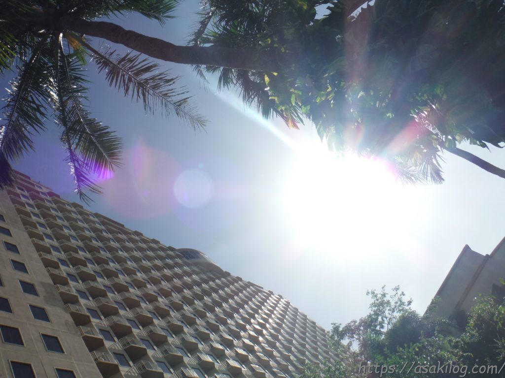 プールサイドに座って見上げた空とヤシの木。the南国!!