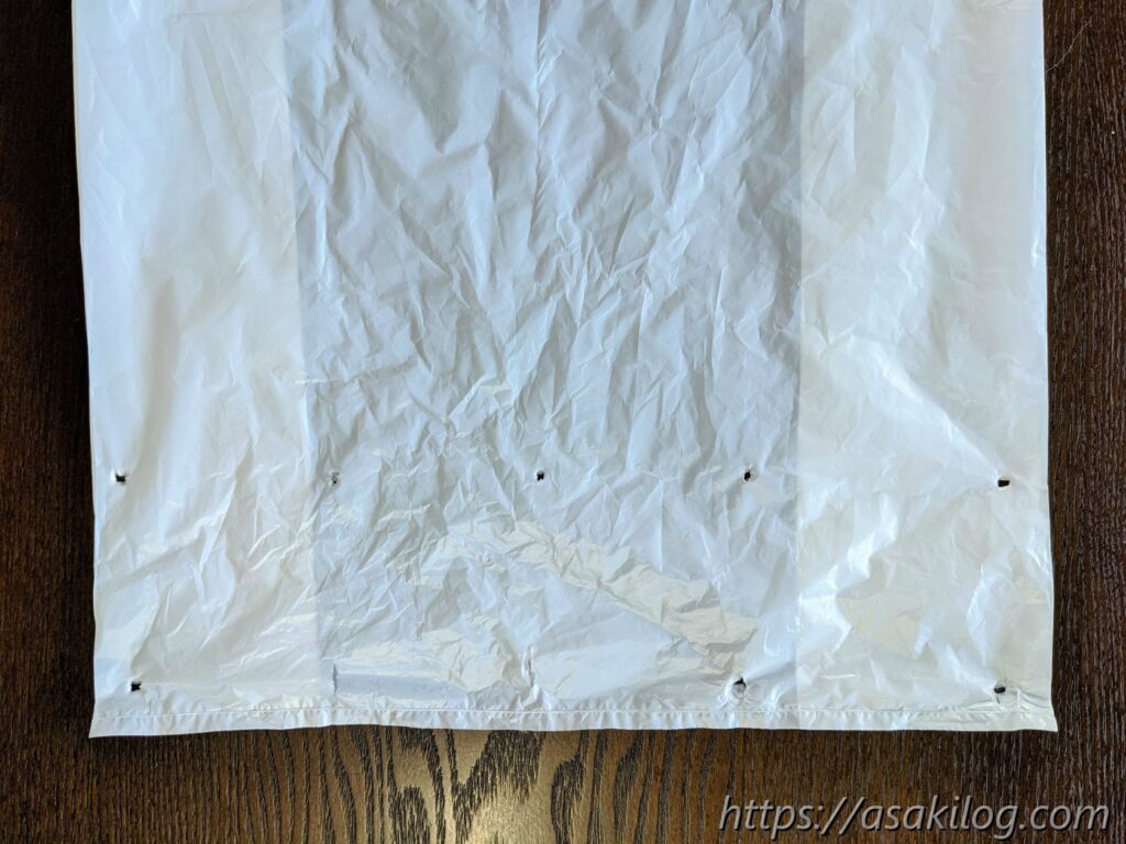 まず、パームマットは水はけがよい(=抜けやすい)ため、土を入れる前にボールペンなどで穴をあけたビニール袋を敷きます。ビニール袋の上に少しずつ土を入れ、ほどよい高さになったら苗を置き、最後苗の周りに土を足して場所を固定します。