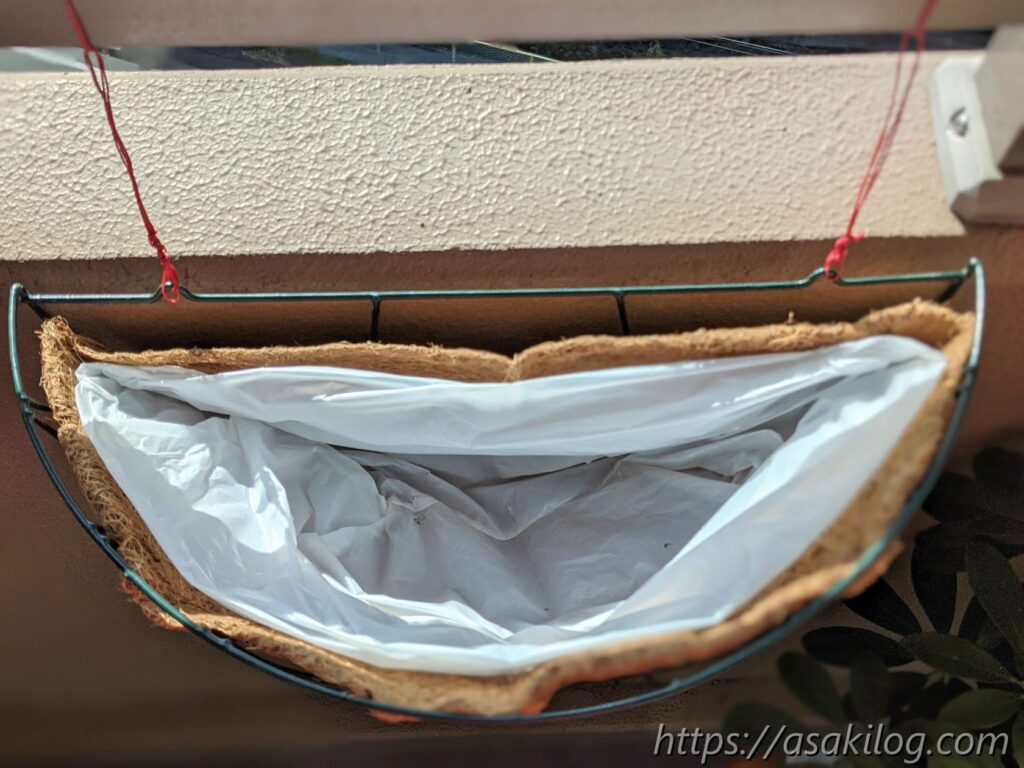 またハンギングバスケットは数年前にダイソーで購入したものを、パームマットは今回新しくダイソーで買い直したものを使いました。先日ダイソーでハンギングバスケットは在庫切れだったので、今も取り扱いがあるのかは分かりません。amazonなどで似たものを購入しても良さそうです。