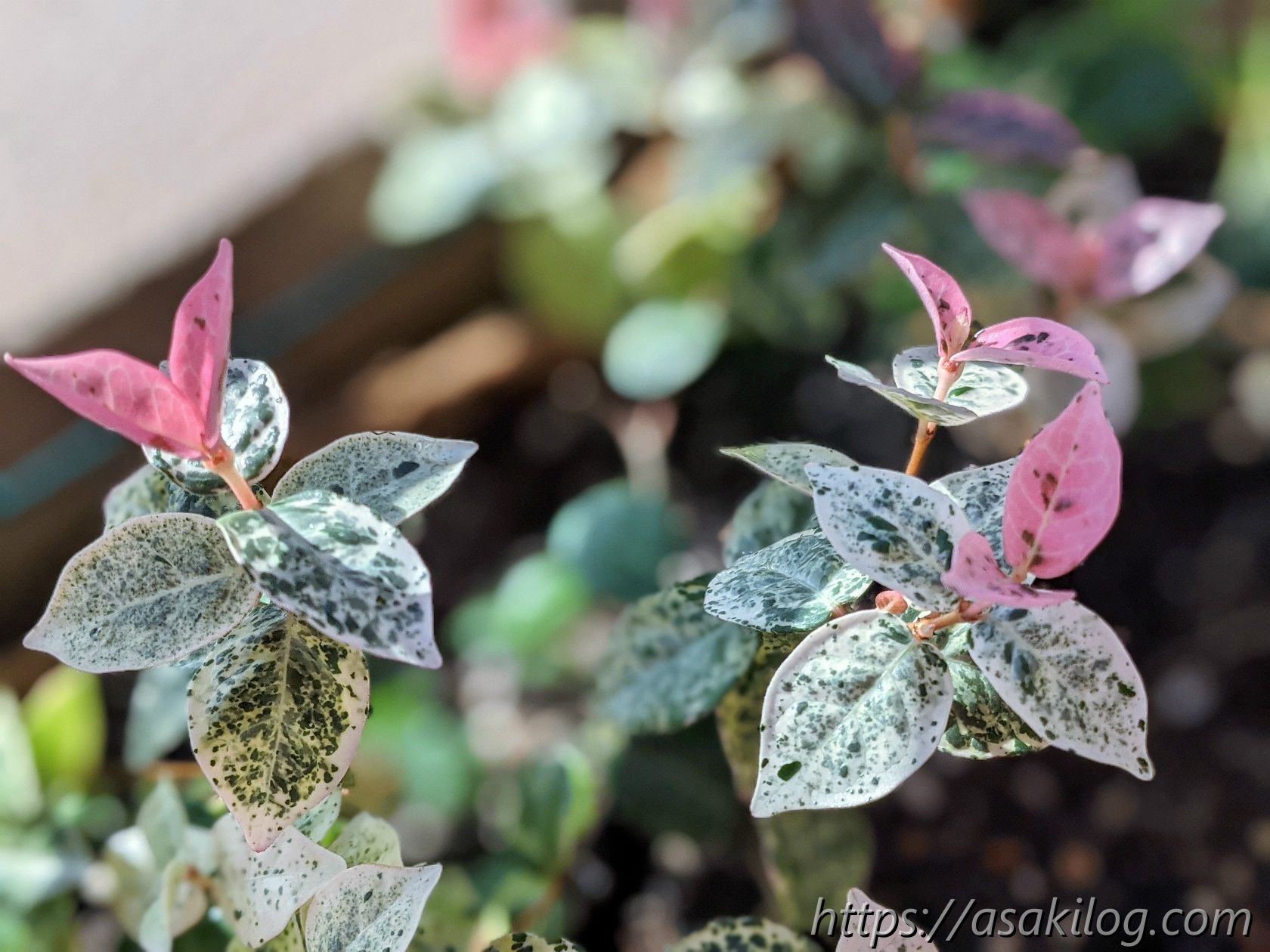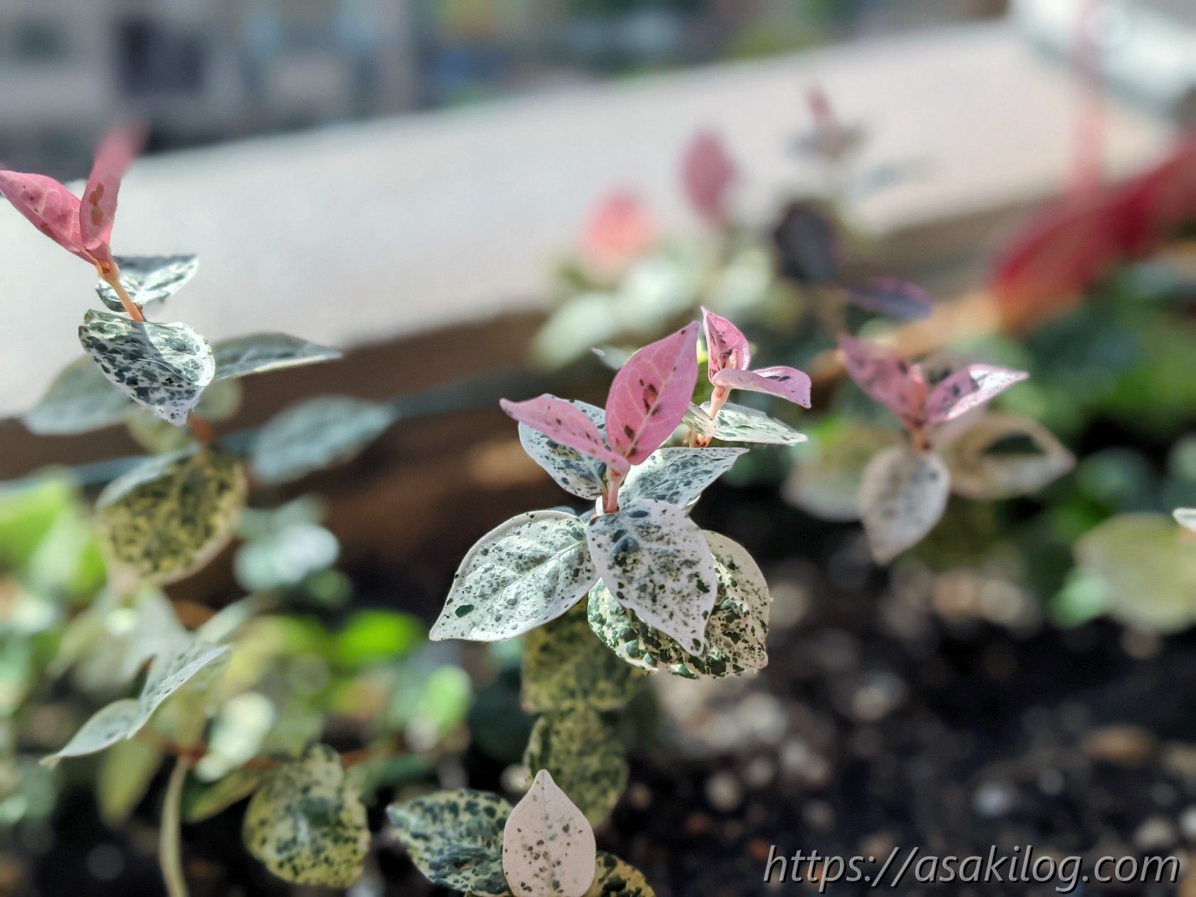 ハツユキカズラは、ピンクと白の斑が入った葉が独特で綺麗ですよね。新芽が出た時は濃いピンク→次第に薄くなり→緑色地に白の斑点に変化→緑一色に変わっていくそう。不思議~。そしてなんとお花も咲くようですよ!