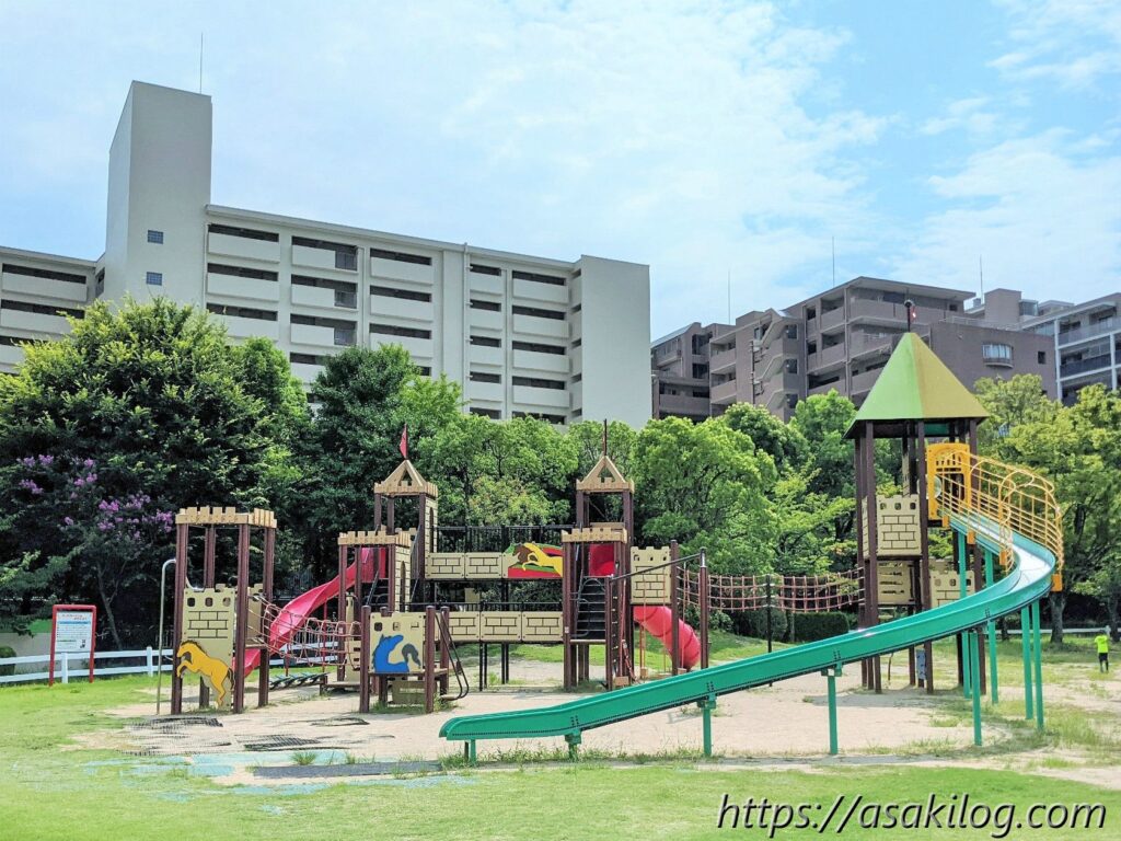 水遊びで服が濡れてしまうため、先にキッズガーデン(公園)で遊具遊びをさせることに。