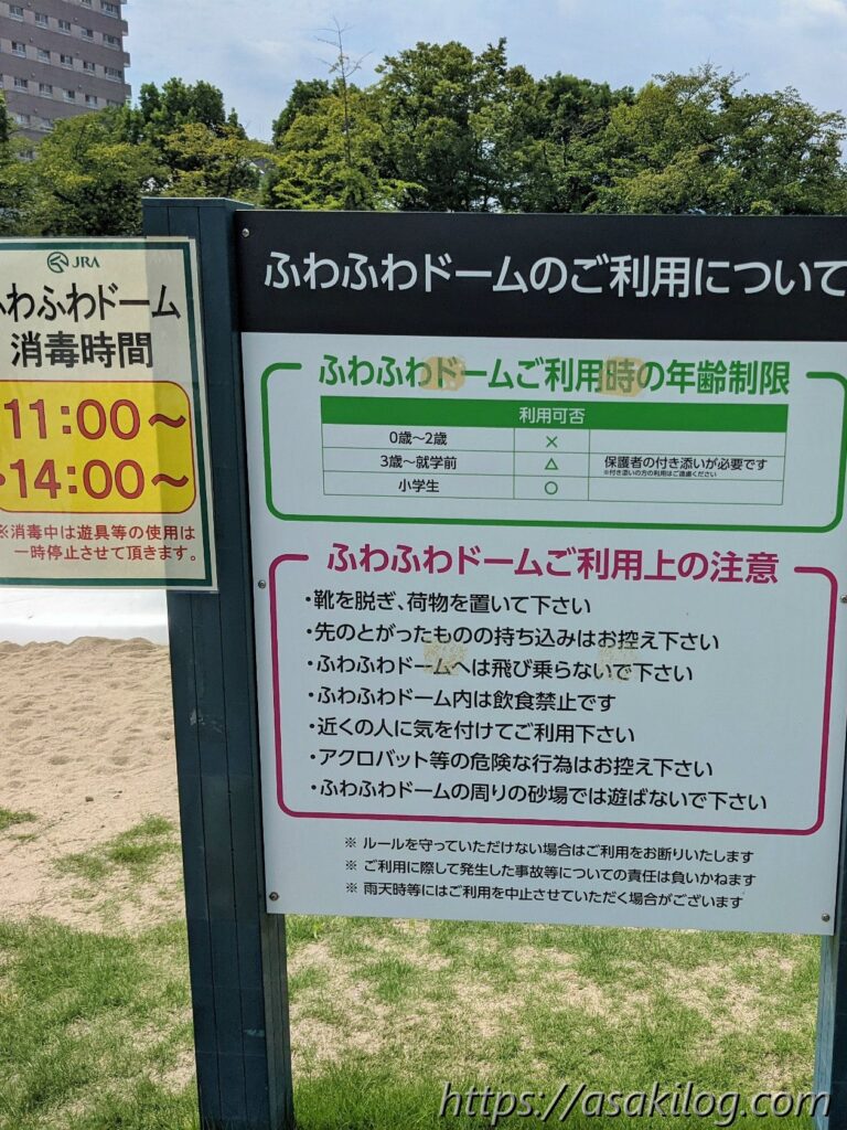 ふわふわドームの感染症対策もバッチリ! ちゃんと消毒もしてるんですね~(アルコールで拭いたりするんだろうか?!) ガラガラに空いてたので、人数を気にする必要はありませんでした。