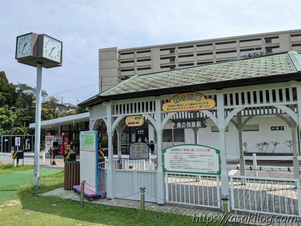 そしてキッズガーデンには、大型遊具のアスレチックもあります。ただし真夏で滑り台の手すりが熱々で、長時間は遊べなかったのが残念・・・。娘が幼稚園くらいの時に何度か乗った「森の列車」もこの日はお休みでした。