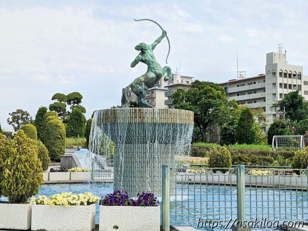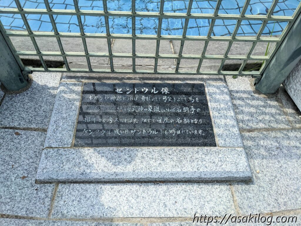 川ゾーンの更に奥にあるのは、シンボル的存在の「セントウル像」。こちらはレース名にもなっているそう。セントウル像の下部分がプールみたいになってて入れたら楽しそうですが、水遊び不可なのが残念でした。