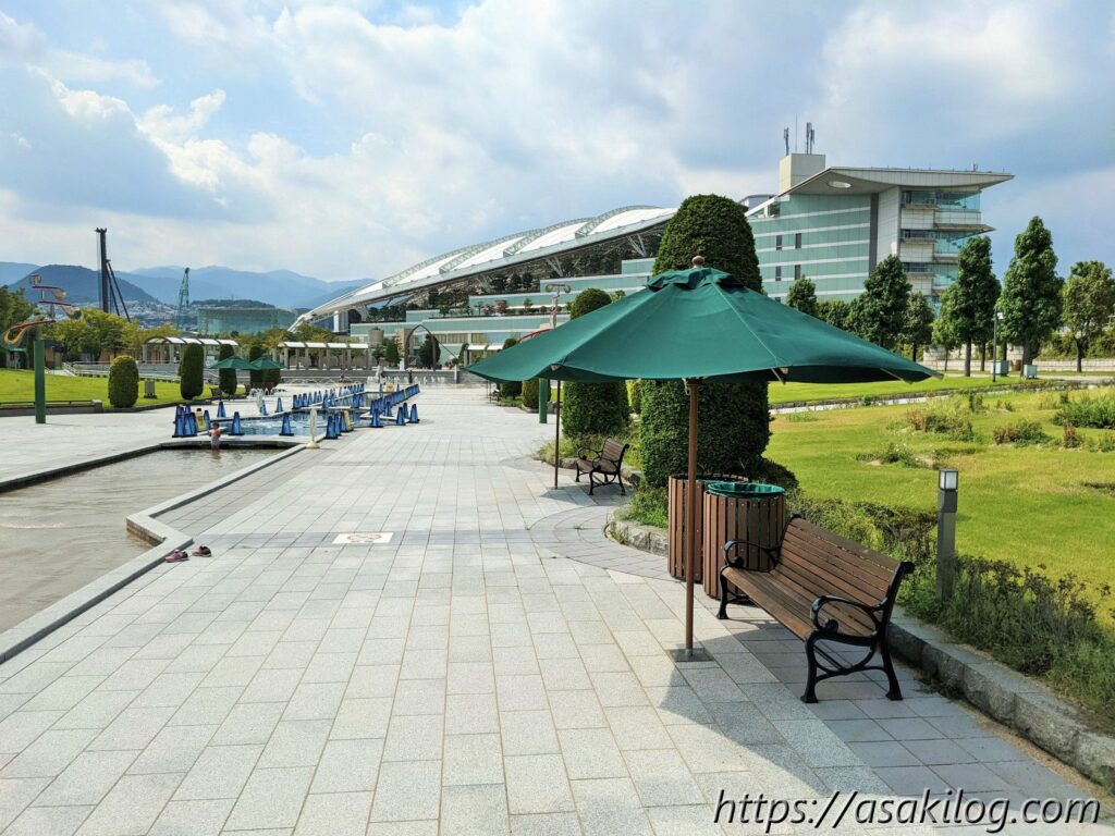 2021年9月にリニューアルされたらしい「セントウルガーデン」エリア。水遊び大好きなうちの娘が遊ばないわけがありません。とはいえ「パークウインズ時って噴水出てるの?水遊びできるの?」と不明だったため、今回は水着の用意は無しで訪れてみました。