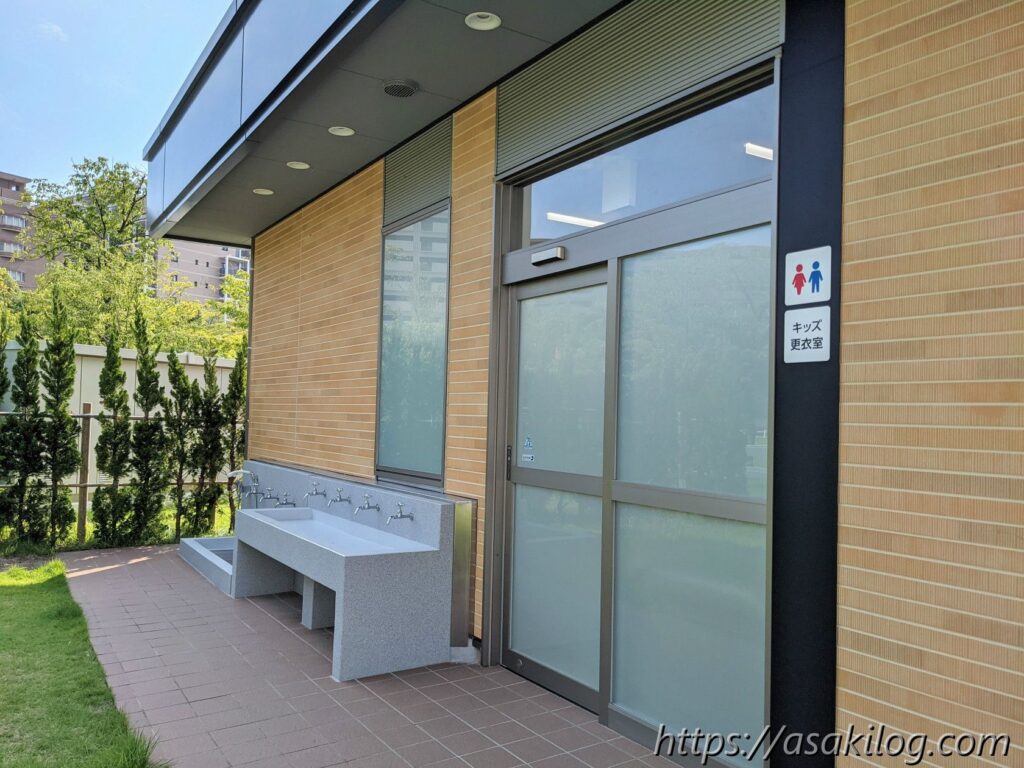 こちらは以前ターフィーショップがあったところに新設された「インフォメーション」と「キッズ更衣室」。キッズガーデン手前にあり、阪神競馬場で水遊びを楽しんだ後は、ここで子どもの着替えが可能です。