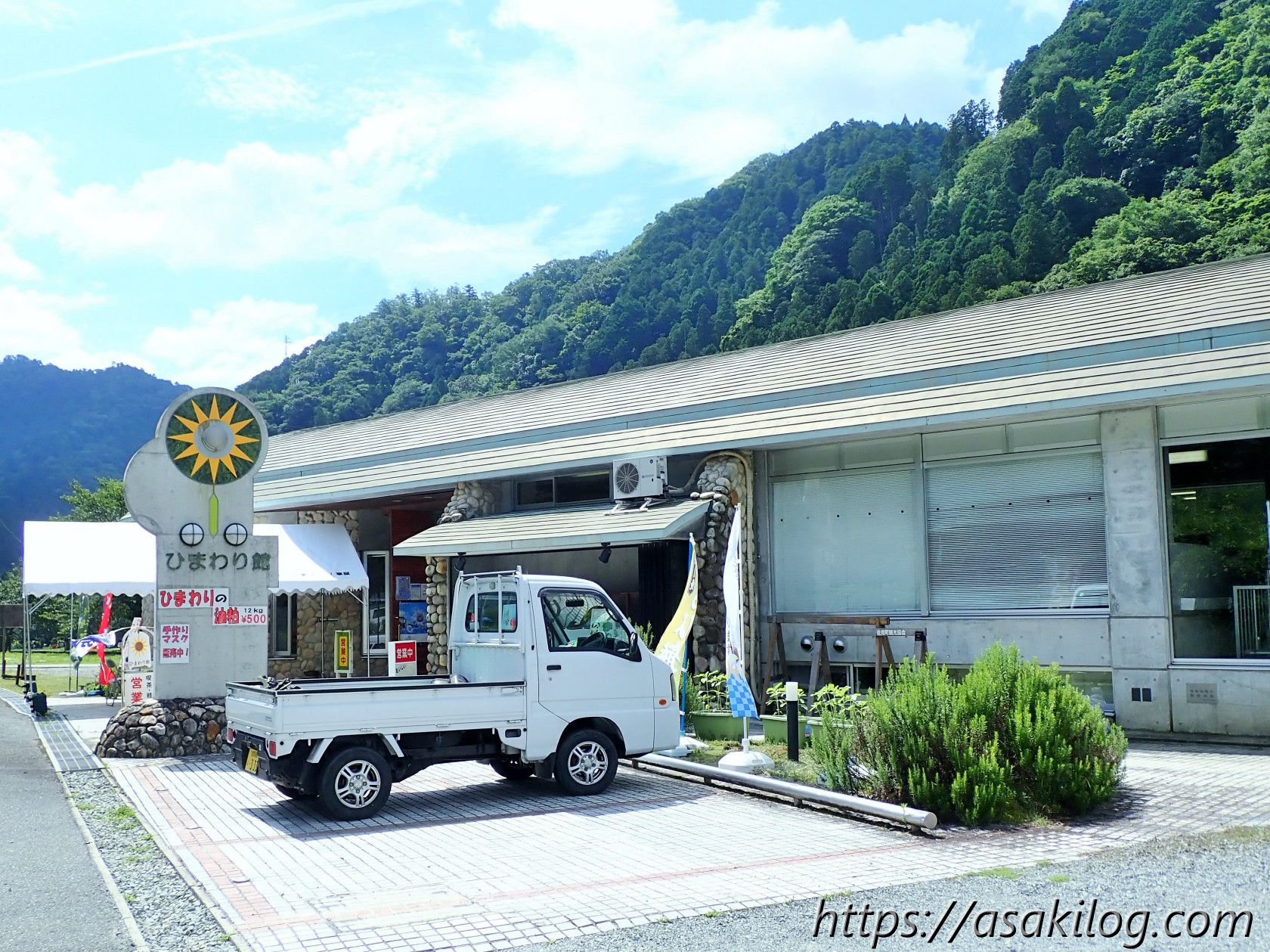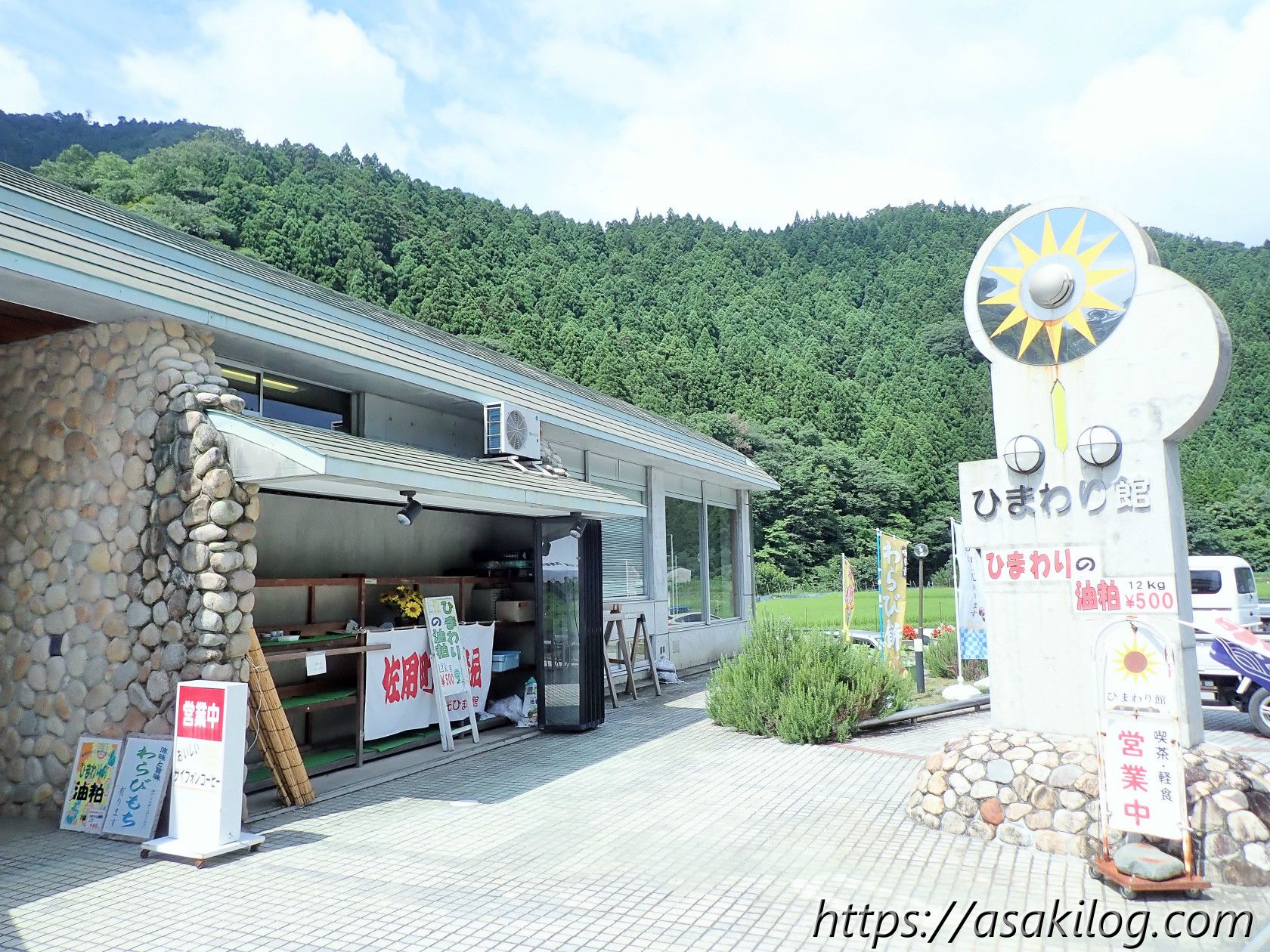 佐用町南光ひまわり畑を出発して約20分後。南光ひまわり館に到着しました。奥に駐車場があります。