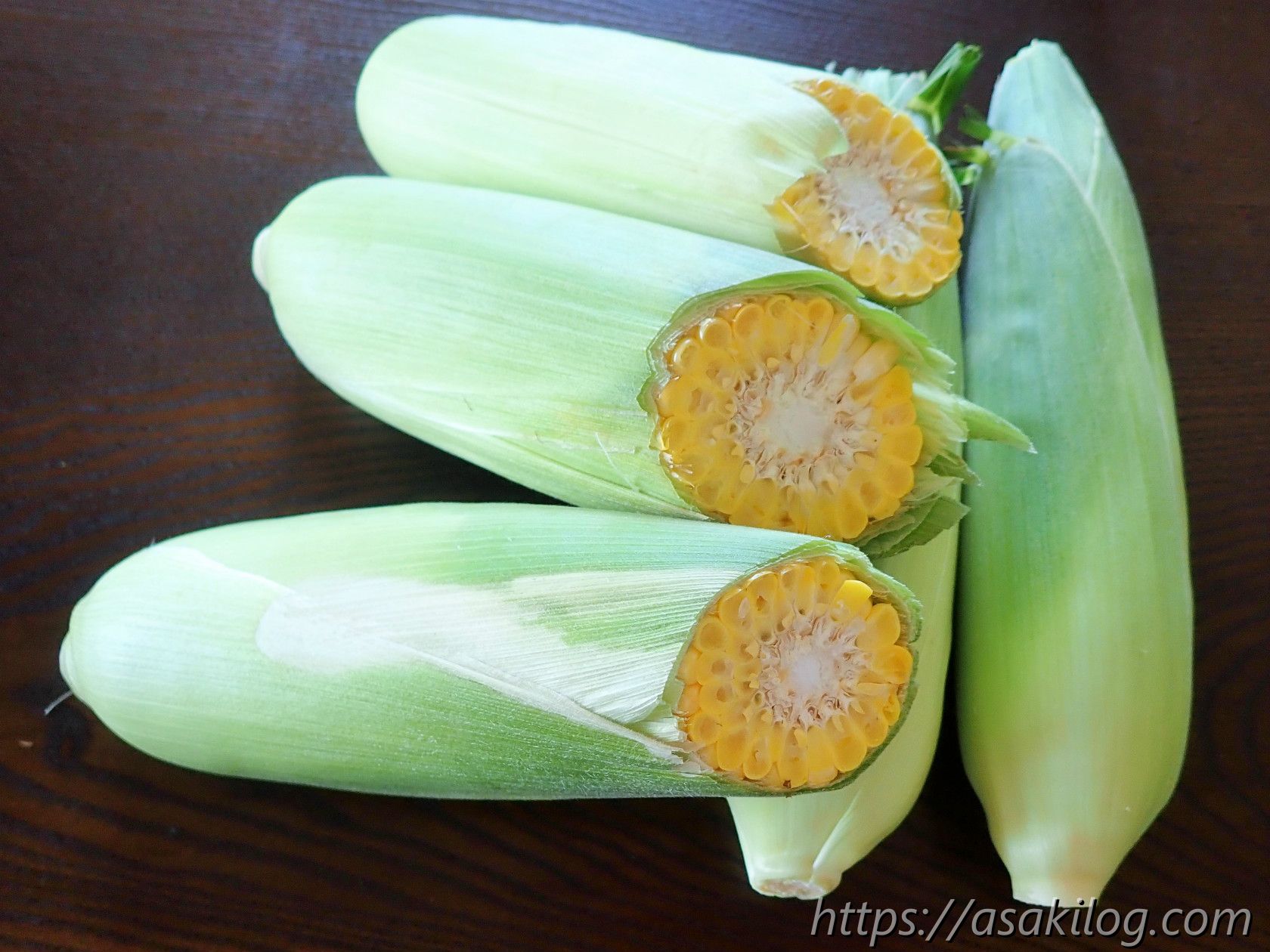 こちら5本で600円でした。(通常のとうもろこしは、1パック2本で300円。鳥さんに食べられて痛んだ場所をカットしたものは3本で300円)