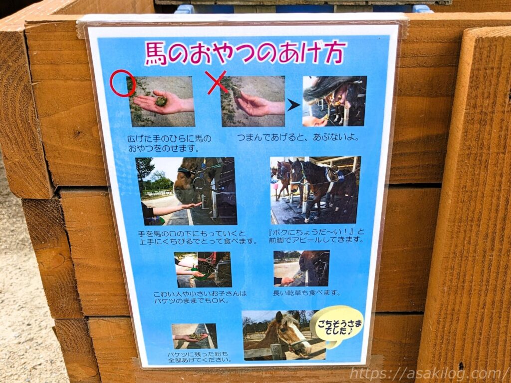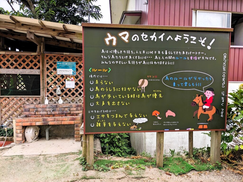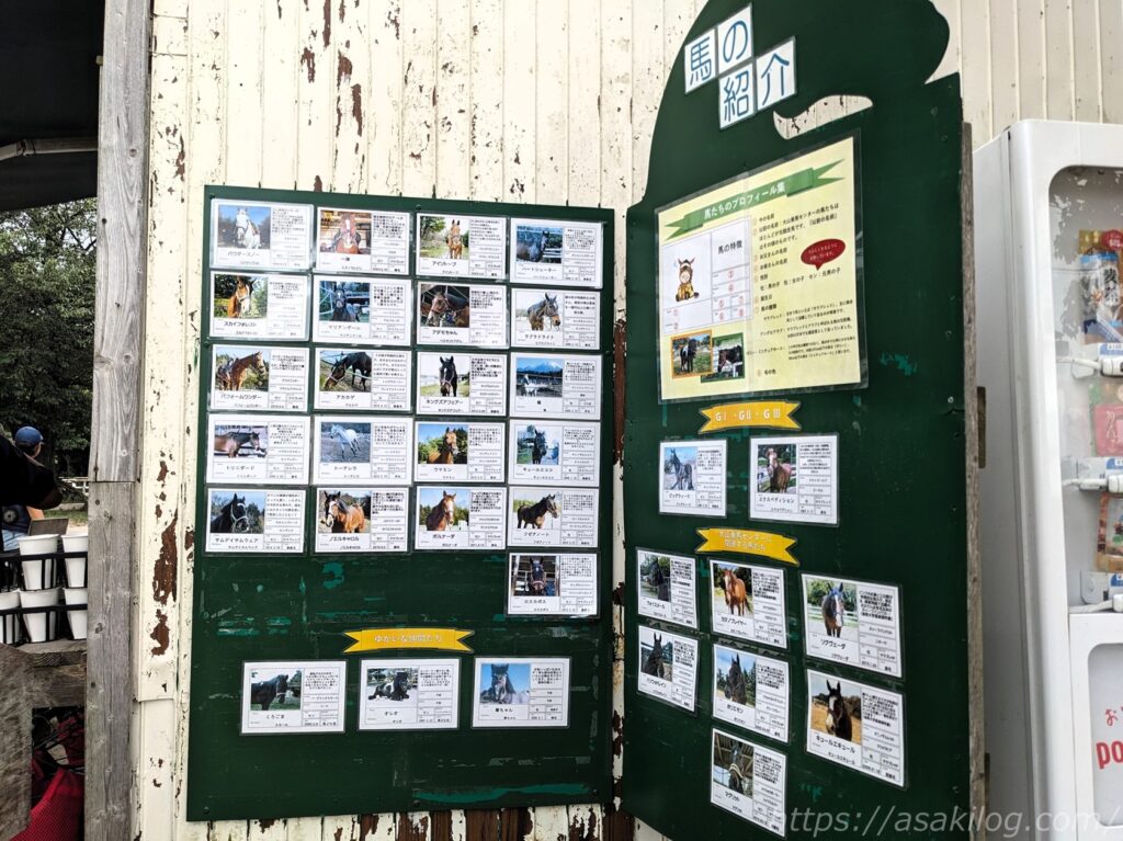 建物の中を通り抜けた先には、馬とふれあう時の案内(ルール)や、お馬さんの紹介などもあります。