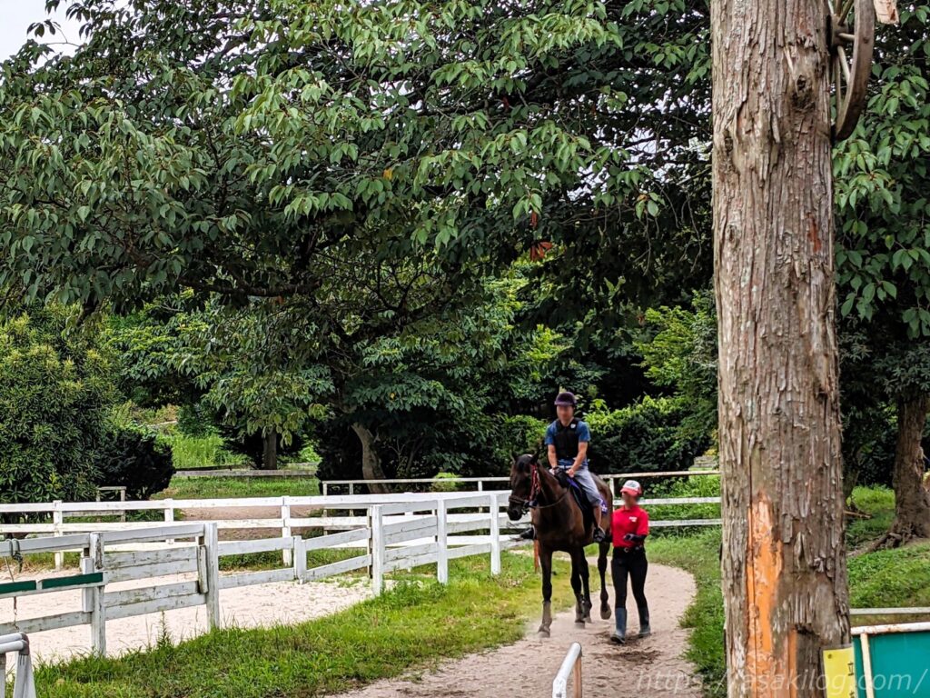 今回夫が体験したのは、乗馬トレッキング体験のお散歩1kmコース。所要時間は約20分ほどですが、スタッフさんのガイド付きなので、初めての方でも安心して楽しめるそう。