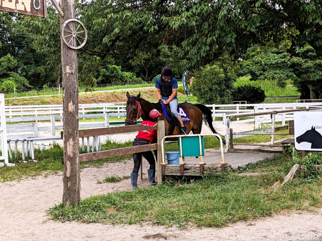 2023年夏休みの蒜山大山旅。大山トム・ソーヤ牧場で可愛い動物たちに癒された後は、競馬好きの夫が今回の旅で最も楽しみにしていた乗馬体験のための施設へ行きました。
