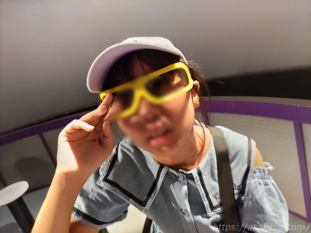 「ワープシアター360」は、立体映像が飛び出すアトラクション。娘と夫君の二人で乗りました。