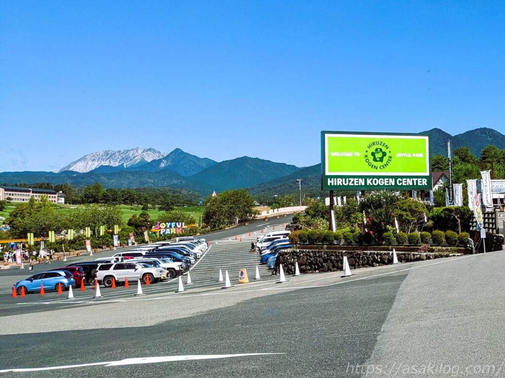 自宅~ヒルゼン高原センターまでは、車で約2時間40分ほど(休憩1回込み)で到着しました。ヒルゼン高原センターの駐車場はかなり広々していて、無料です。