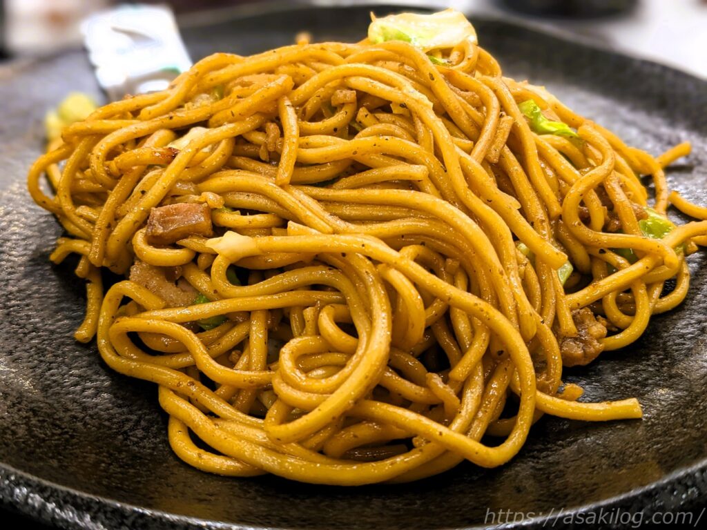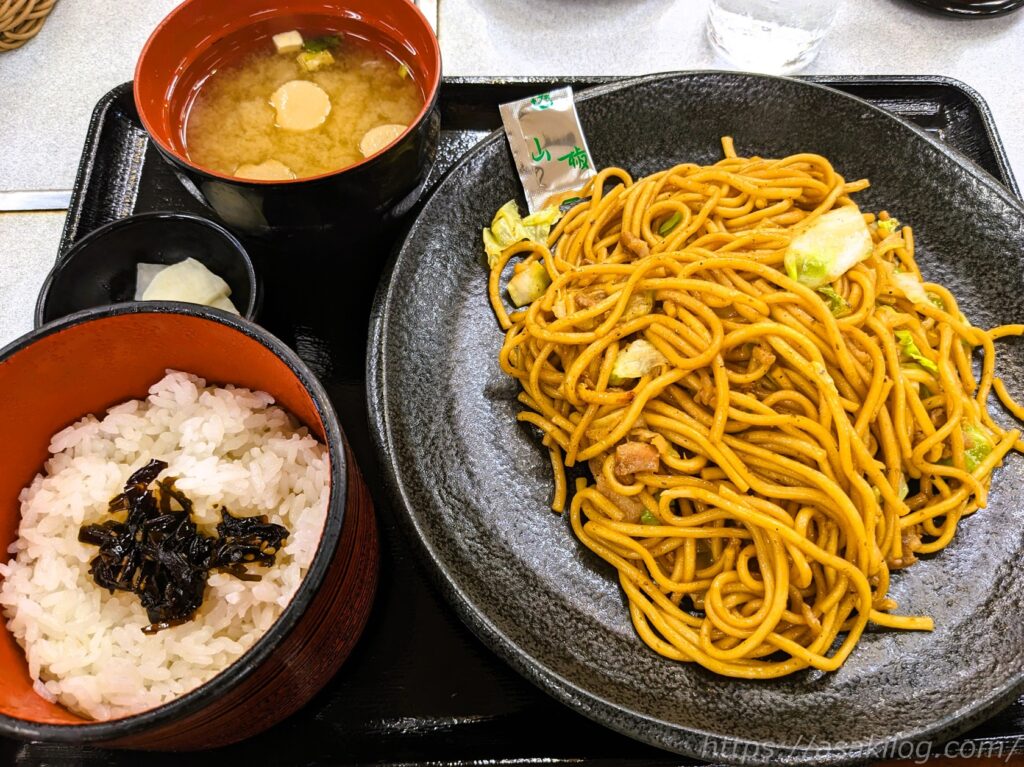 が、私と夫は岡山県真庭市蒜山地方のご当地B級グルメ「ひるぜん焼そば(990円)」をオーダー。鶏肉・キャベツ・コシのある太麺に、甘辛の味噌ダレで味付けした蒜山のローカルフードとして知られています。実は数年前に別の場所で食べたことがあるのですが、今回も美味しかった~。満足満足。