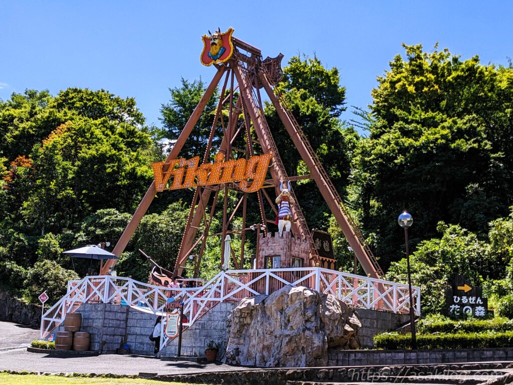 こちらも遊園地の定番「バイキング」。娘と夫君の二人で乗りました。