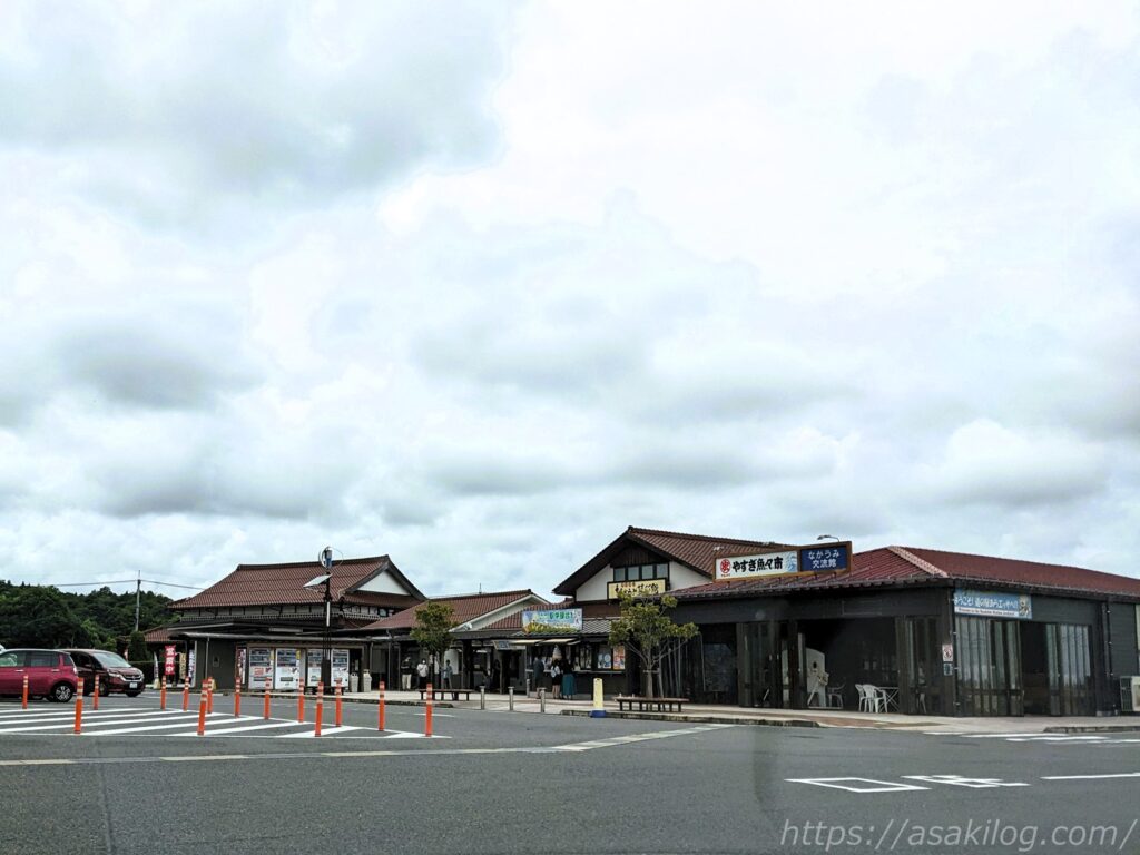 ガイドブック片手にワクワクしながら立ち寄ったのですが、なんか空いてるなぁ?人が少ないなぁ?と思ったら、なんと海産物等販売所「やすぎ魚々市」が臨時休業(台風のせい?)。ここで採れたて旬の海産物を買って帰りたかったのですが、とても残念でした。
