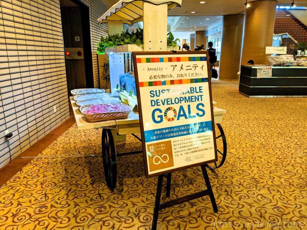 こちらがロイヤルホテル大山1Fにあるロビーです。アメニティの一部はここから持っていくスタイルで、同じ階にお土産屋さん「ショッピングプラザ」もありました。