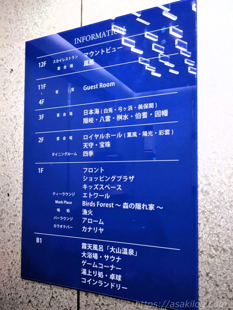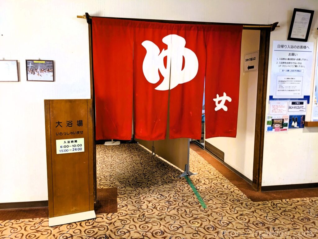入口の写真しかありませんが、B1Fの大浴場では露天風呂「大山温泉」に入ることもでき、1日の疲れをゆったりと癒すことができました。