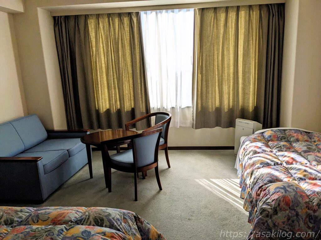 左の写真が、普通のツインベッド。右の写真が、娘のエキストラベッド。ソファーとチェアセットも付いているので、のんびりと過ごせます。