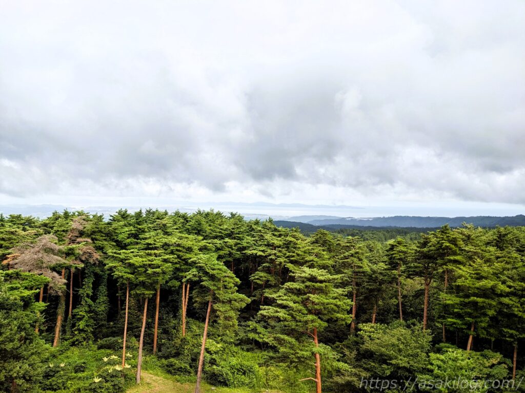 この日は台風が近づいていたため、どんより曇っていますが、左奥に米子市内や海方面を一望できました。