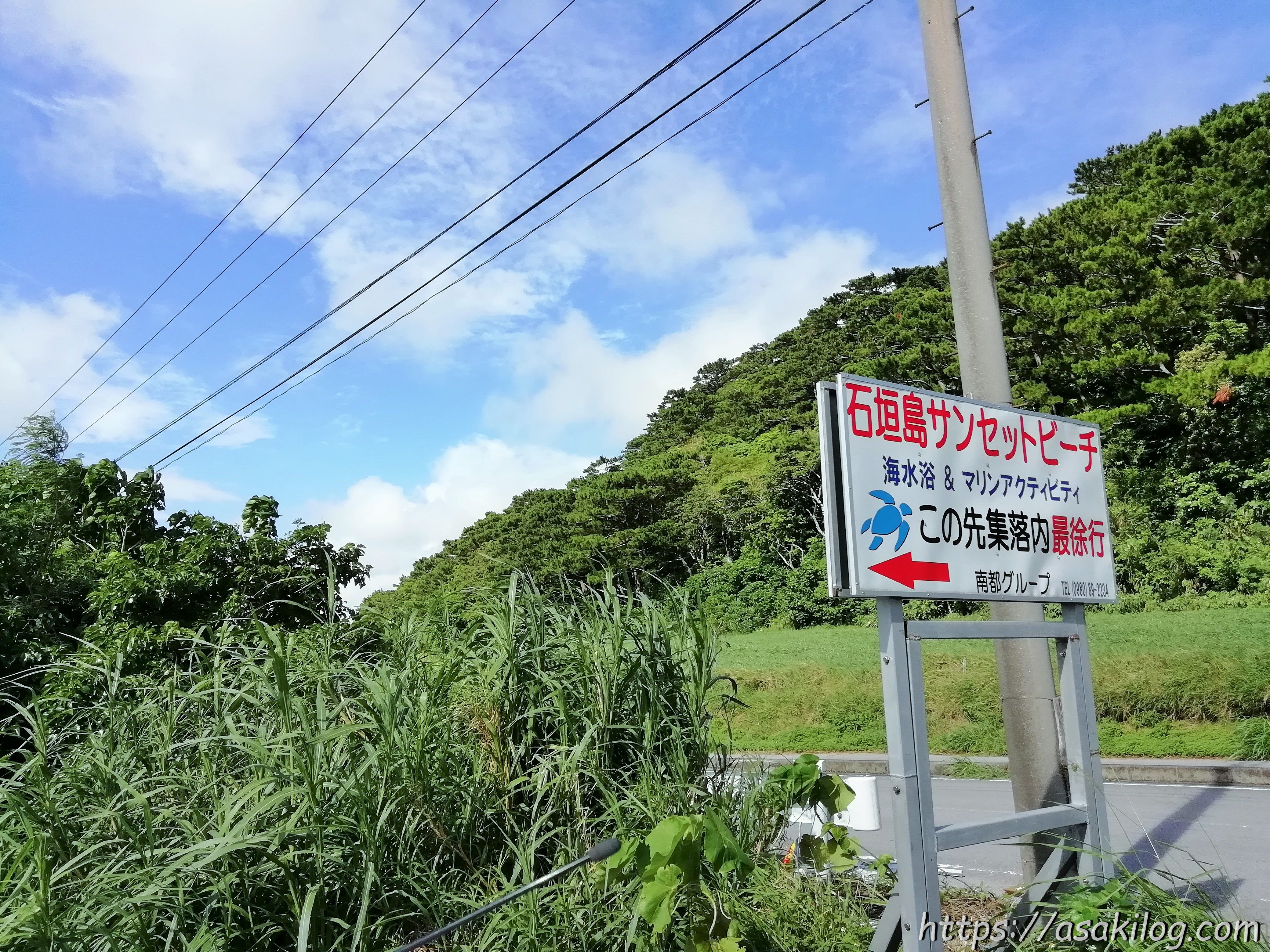 石垣島サンセットビーチの看板を発見!見落としてしまいそうなくらい小さな看板です。