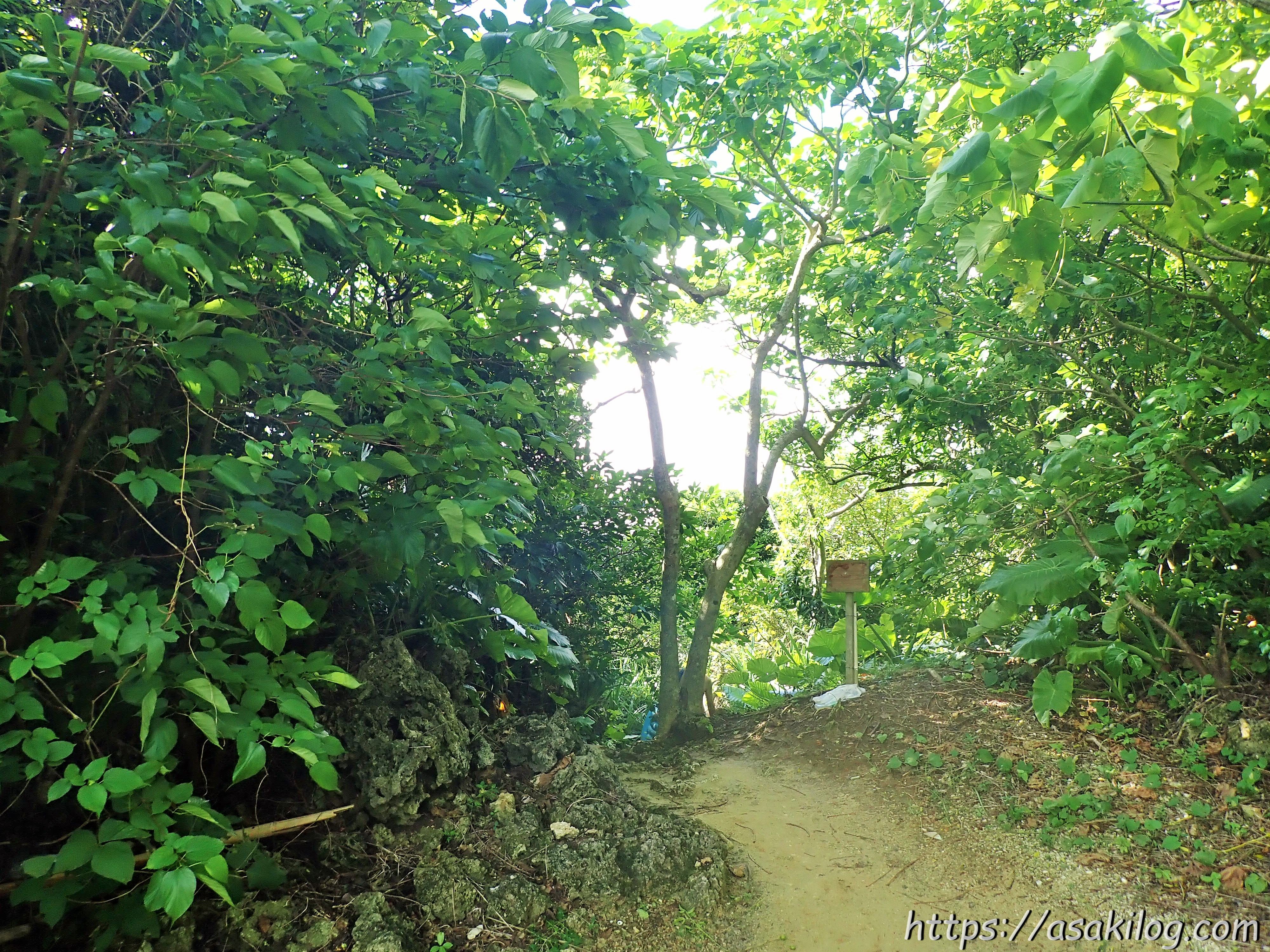 ビーチへ向かう入口を、ビーチ側から撮影してみました。ここから坂道を登った先に駐車場があるとは・・・周りの緑に埋もれてしまいそうなくらい、小さな入口でした。