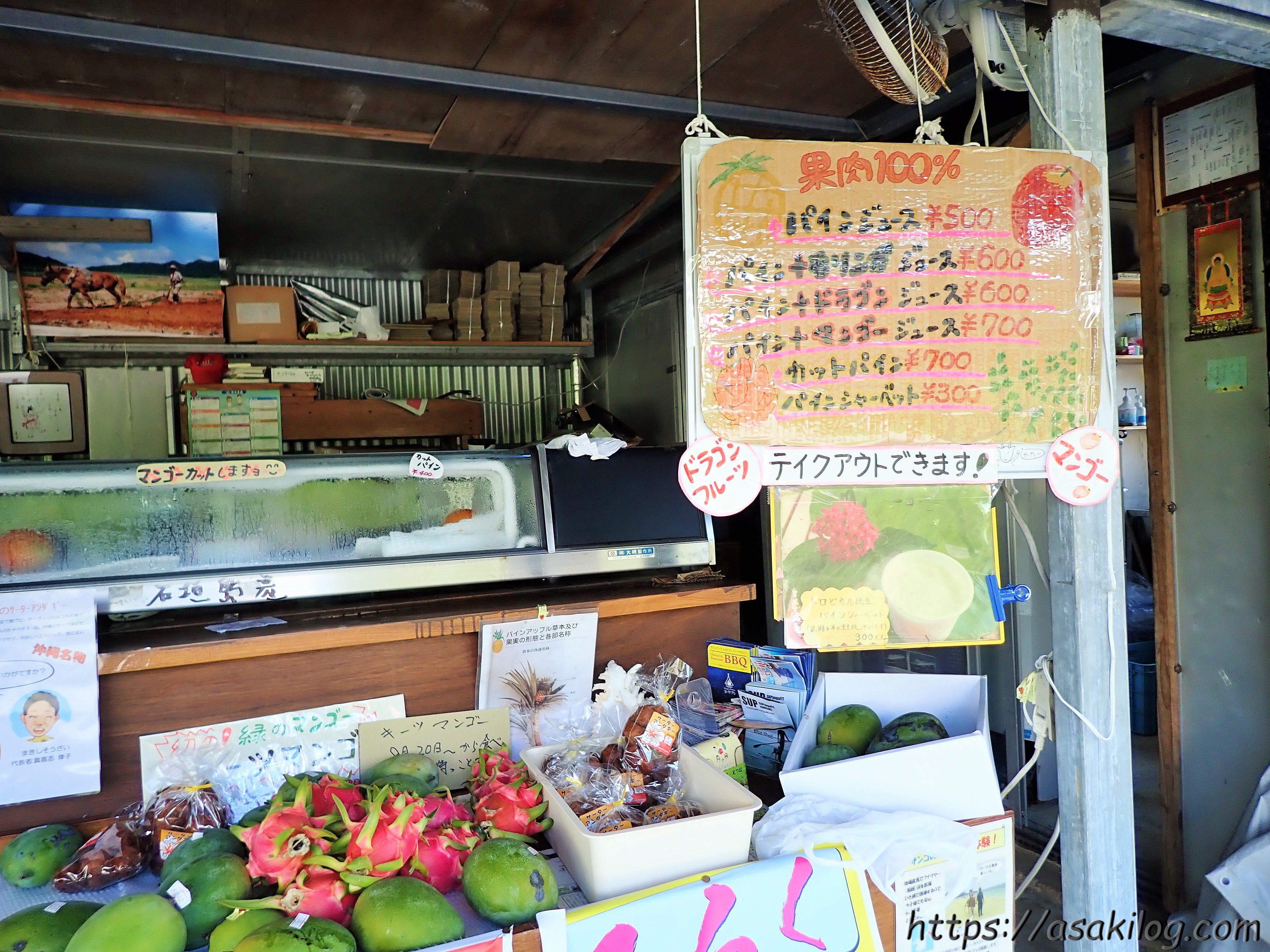 ここでは、果肉100パーセントジュースや、マンゴー・ドラゴンフルーツを売っていました。