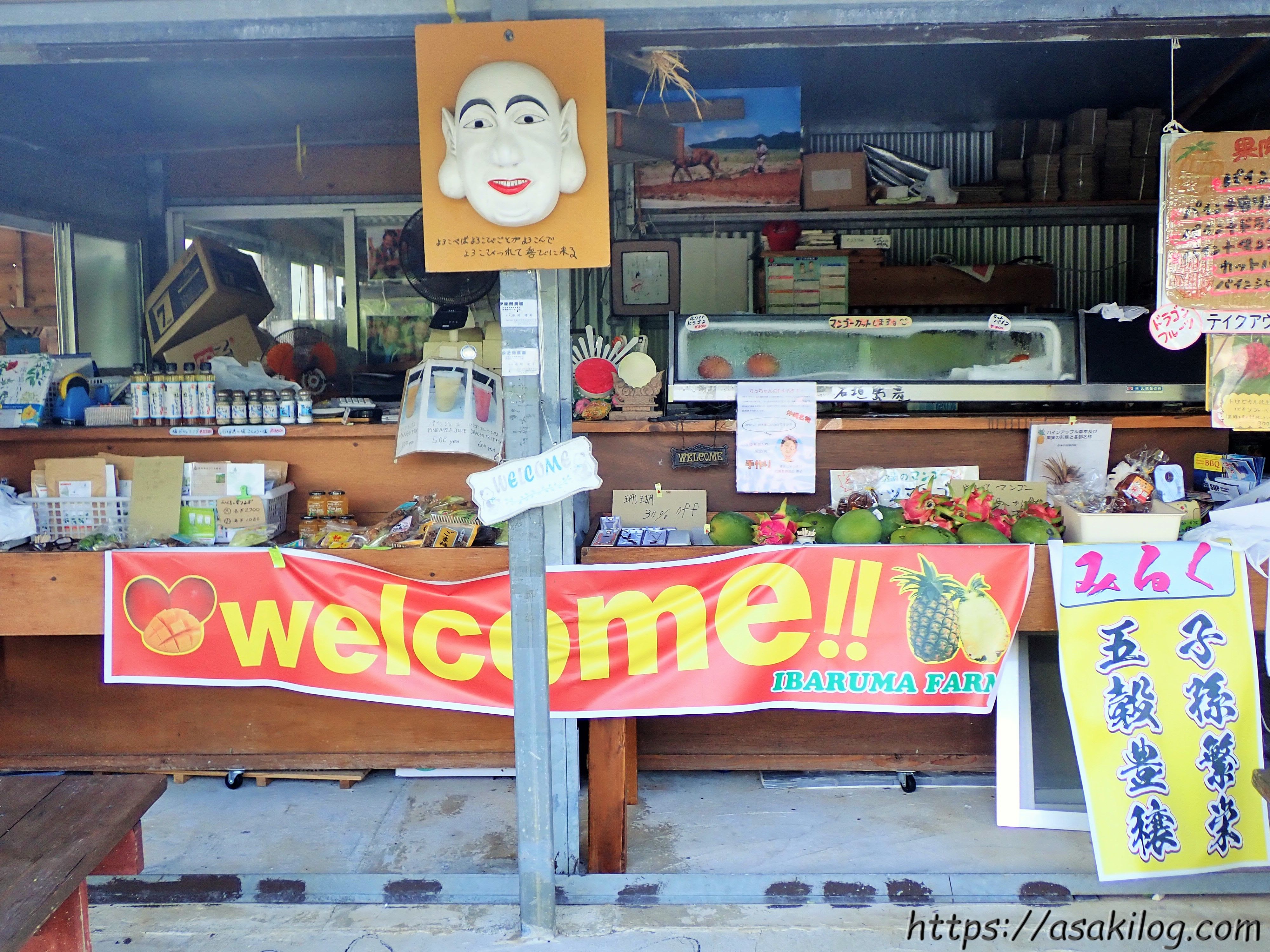 お店の中央上部に飾っているのは「ミルク神」、八重山地方のお祭りに登場する神様です。「よろこべばよろこびごとがよろこんで、よろこびつれて喜びに来る」