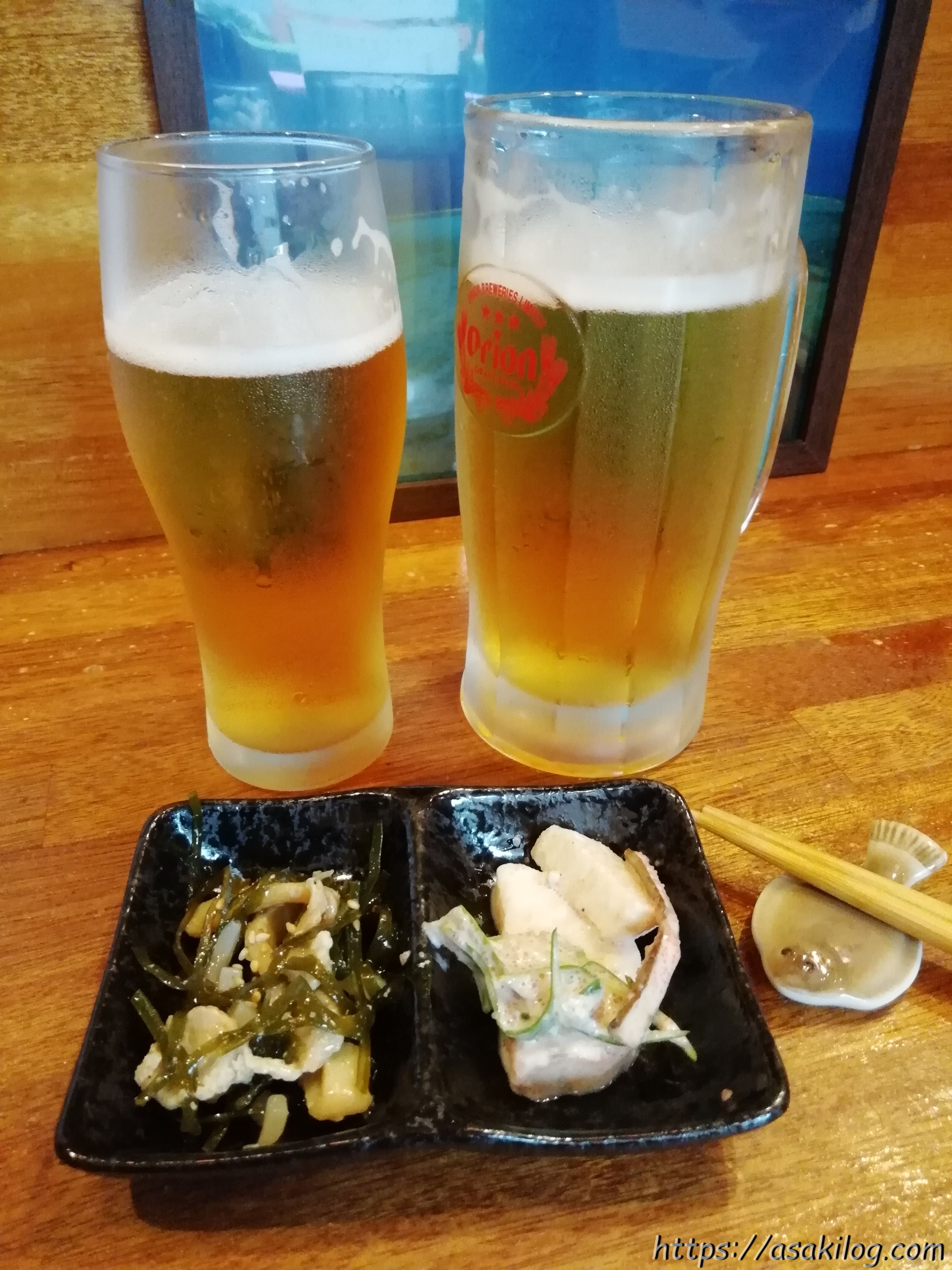 あっきでの食費は、上記お料理とオリオンビールなどを合わせて、だいたい7,500円くらい。友人の方がたくさんビールを飲んでいたので、私たち親子の分は3,000円ほど払いました。
